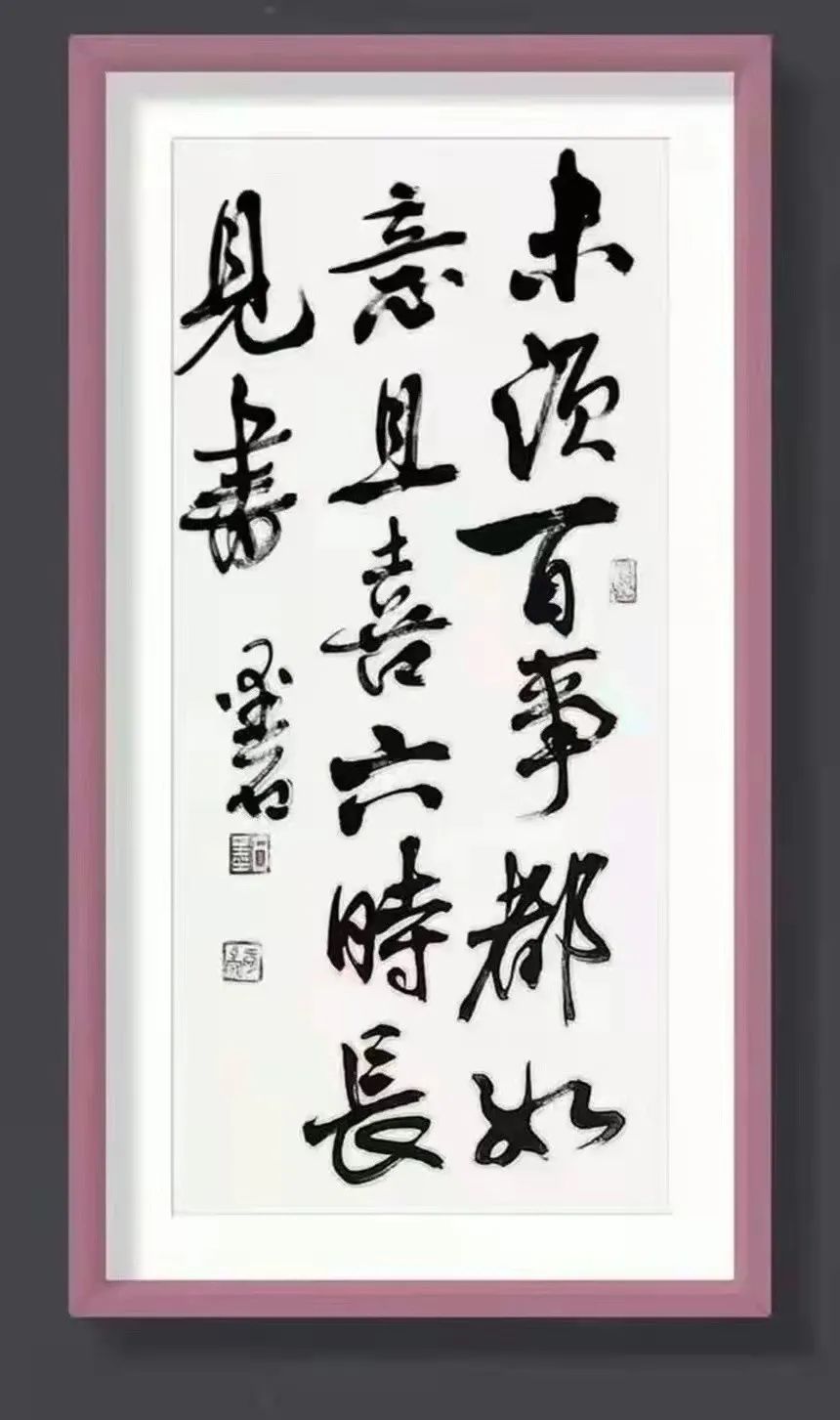 他的书法艺术成功地吸取了书法大家的艺术精华,结合现代生活的感受和意识,营造出极高的意境和情趣,形成自己独特的风格。