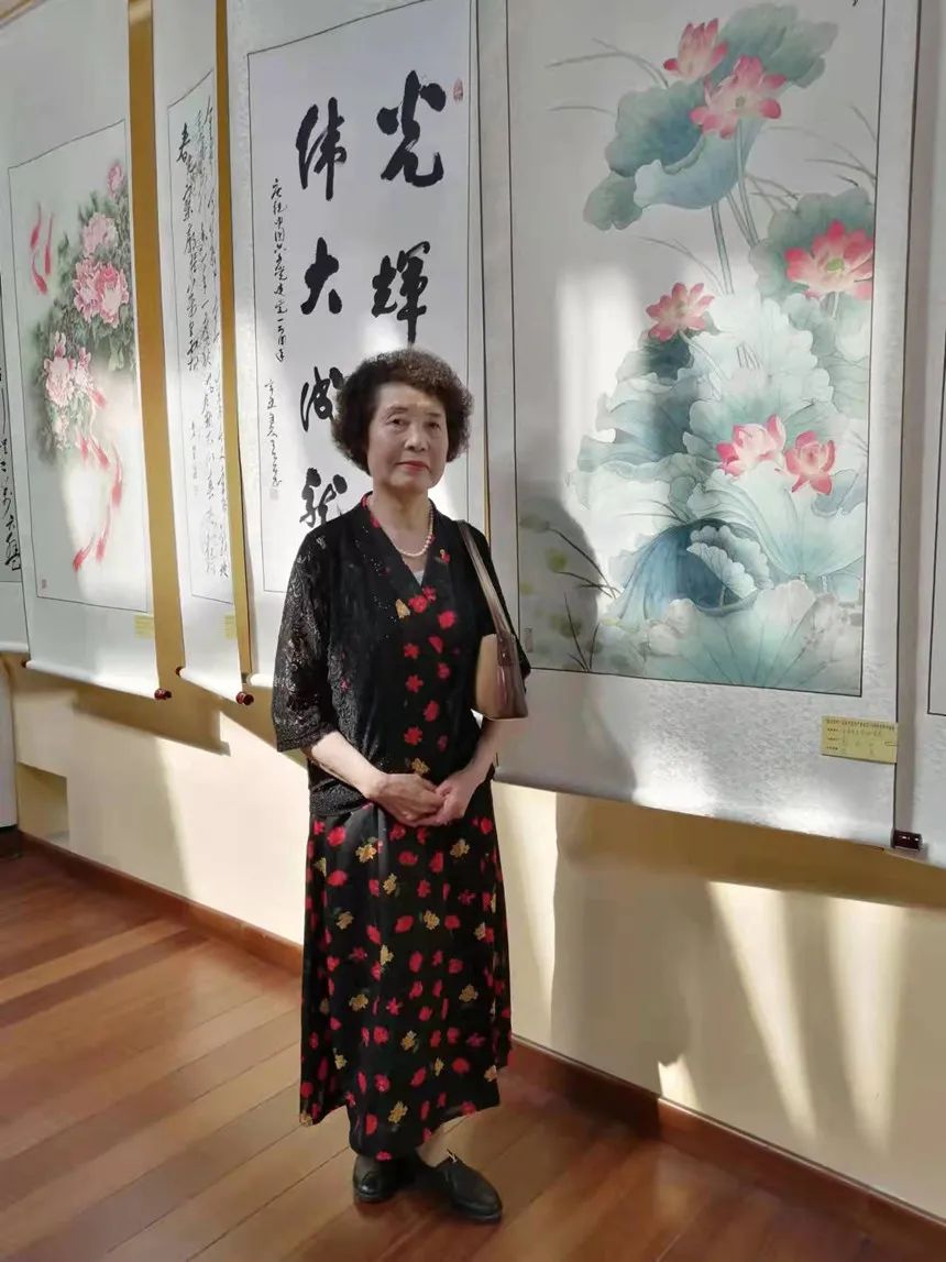 郭永田老师的绘画作品表露出丰富的象征意义。基于几十年的绘画经验,郭老师整理出一套渲染技法,如平涂、分染、罩染、接染、点染等,还常用绢后托色之法,使画面色彩薄中见厚。她在色彩渲染技法上以继承传统设色规律为主,具有装饰性的特征。她非常注重表现花卉自然生动的一面,为了表现牡丹、荷花等花朵的层次感,总是要用更重的色彩来分染花瓣的基部,如白色花要加染赭绿,黄色的花用赭石和胭脂分染,这样花朵层次分明,更显活脱、生动。色彩表现既明丽清爽,又沉着典雅。