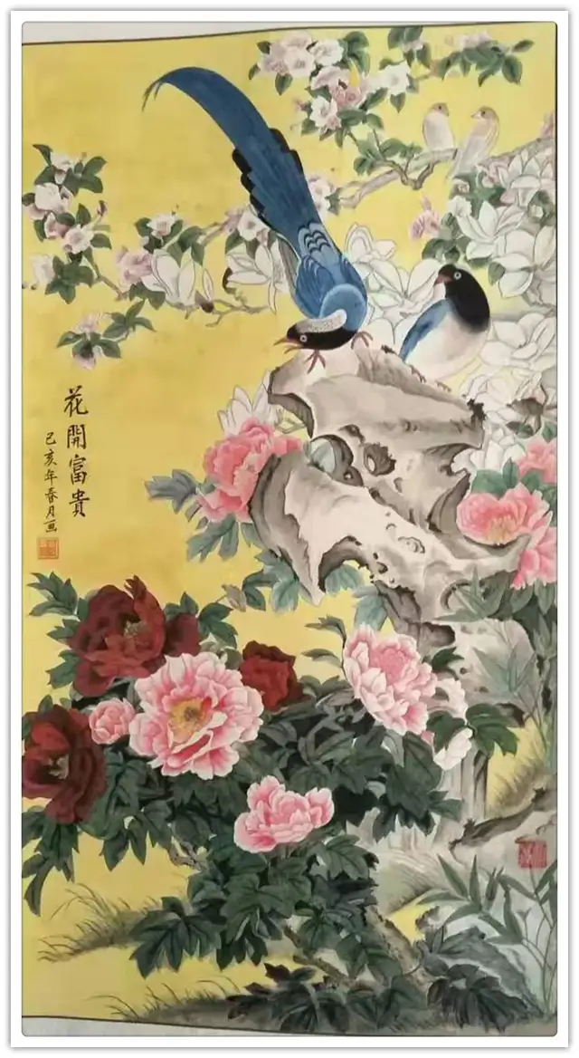 多年的翰墨生涯,高保贵先生的创作既有西方写实,又有东方写意。观其油画作品,是将西画技法融入国画创作的工写兼擅。他将西画之细腻与工笔之严谨结合一处,借鉴西画率真的表现力和真诚的艺术语言,融入画中形成明暗之分,阴阳向背的立体感,加之工笔“有巧密而他的作品虚实相宜、疏密有度,用色清新柔淡如流水般色调交融观其国画作品,既有传统笔墨,又有现代审美意识,构图新奇,结构严谨,画面疏散有致,每种物象的阴、阳、向、背各种姿态都刻画的栩栩如生形成了水、色、墨交融一体, 点线块有机结合的斑澜多姿及艳而不俗的特点。其设色可谓丰富,但绝不堕艳俗,他的着色不以鲜丽为追求,而是筑厚重为意境,能瞬间把人带入一种幽谷情怀中。他的作品虚实相宜、疏密有度,用色清新柔淡如流水般色调交融,又因敢于创新而成就了自我逸格。他把自己的艺术和时代变革紧紧的联系在一起,从现实生活中汲取灵感,因而,其画作呈现出兼容并蓄、清新厚重华彩纷呈、活色生香的艺术风格。艺术成就最突出地体现在彩墨画中,将中西画法融为一体使之相得益彰,自成风格,堪称集古今中外艺术之大成。