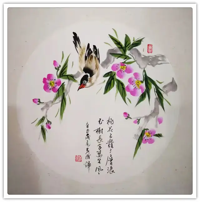 花鸟贵在意象传神,临摹之作,虽有神似,但不可拘泥,此不足为道,唯有知其然,而究其所以,笔墨方才能得神,如此即为花鸟丹青的正道法门。当代著名画家吴国辉先生,师承于多位书画大师,深谙谢赫六法与饶贤十二忌,在丹青创作上可谓是深具正道,其花鸟取法李复堂,参读陈王二贤,作品独辟蹊径,气势雍容,大俗大雅,意境深厚,其创作的花鸟作品,完全可称得上是一幅幅深得古法而又独显天香的当代艺术臻品!