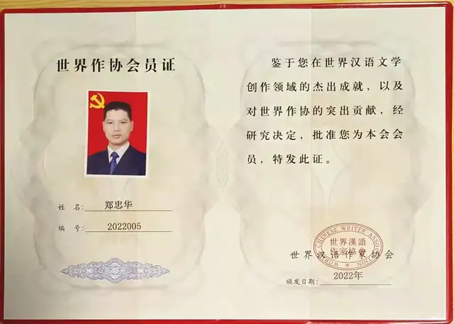 现为:中国教育学会会员、中国书法家协会会员、中华诗词学会会员、中国楹联学会会员、中国书画家协会副会长、中国国画院书法研究院秘书长、中国剑光书画院理事、中国新时代档案库会员等。书法作品入编《走进艺术大师》、《中国文化艺术人物年鉴》、《中国当代文艺名家名作年鉴》、《大国崛起》等几十本书籍,诗词作品入编《中国当代诗歌大辞典》、《中国当代爱情诗歌精选》、《中华诗词集萃》、《中华诗词歌赋文学精英大辞典》、《四十年华语文坛精品汇编》、《诗中国杂志》第40期、《韵墨情雨三部曲*千里思乡情》、《中国现当代作家诗人大词典》、《感动城市的最美诗文》、《中国抗击“冠状病毒”网络前沿诗文典藏》、《感动中国的醉美诗文》、《中国网络诗歌年选2019》、《中国二十世纪诗歌备忘录》、《中国网络诗歌年选2020》、《世界名人录》、《中国当代传世诗文大辞典》、《共和国诗人》、《建党百年.文坛先锋作品珍藏版》等书籍。部分作品在《当代文学集萃》、《燕京文化交流》、《文学中国》、《中华诗歌报》等网络平台发表。出版书籍有《郑忠华书法作品集》、《诗意人生--郑忠华诗文精选》。有网络作品推广《诗意人生——郑忠华诗文第一部》、《诗意人生——郑忠华诗文第二部》、《诗意人生——郑忠华诗文第三部》、《诗意人生——郑忠华诗文精选(50首)》、《为生命创造奇迹——郑忠华诗文选》、《郑忠华散文网络展》、《郑忠华诗文、书法作品联展》、《2019年郑忠华诗词散文》、《2020年郑忠华诗词散文》、《生命的轨迹——郑忠华诗文选》、《让生命充满色彩——郑忠华诗文选》、《2011年之前的诗——郑忠华诗文》、《郑忠华诗文音频制作选用(43首)》《做最出色的自己——郑忠华诗文欣赏(50首)》、《活出人生的精彩——郑忠华诗文欣赏(50首)》、《好好爱自己——郑忠华诗文欣赏(50首)》、《鹰的重生——郑忠华2021诗文欣赏(50首)》、《最美的遇见——郑忠华诗文欣赏(50首)》、《是鹰就得飞翔——郑忠华2021诗文欣赏(50首)、《舞出人生的精彩——郑忠华2021年诗文经典欣赏(76首)》、《激发心灵的力量——郑忠华诗文欣赏(50首)》。百度搜索:郑忠华诗文、郑忠华书法。