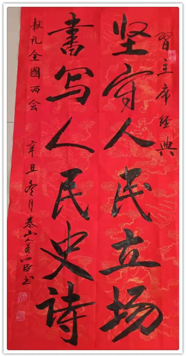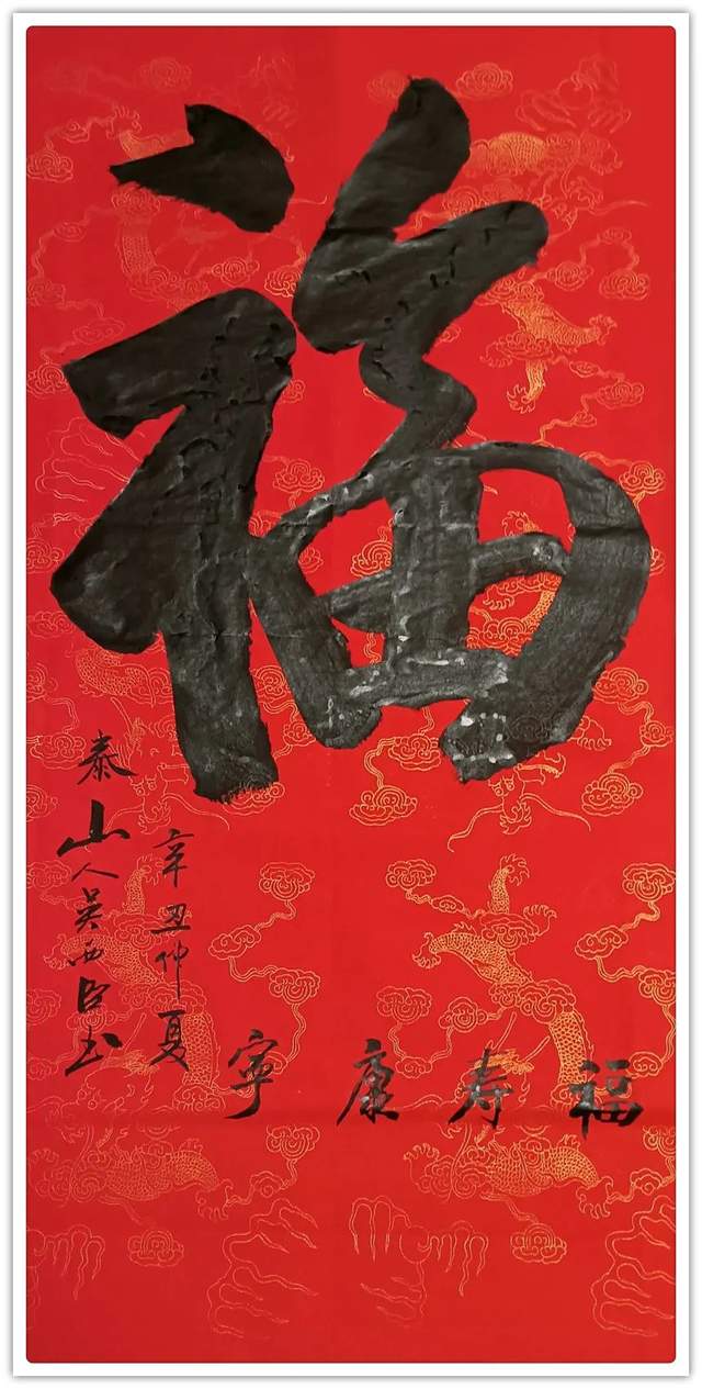 在笔墨的法度上吴西臣先生尚且如此,在通幅作品的字势和布局上其更是唯任于高妙!一幅龙字翰墨,腾挪揖让而不失于变化自然,粗细搭配而不失于轻重所构,是有庞然之躯,更有高势所指,而在一些其它榜书作品中,吴西臣先生亦是展现出了非凡的结构变化,臂如竖笔之际,直冲纸端,整体的视觉审美感可谓出奇!因势而生,因境而成,高作至典,可饰厅堂!