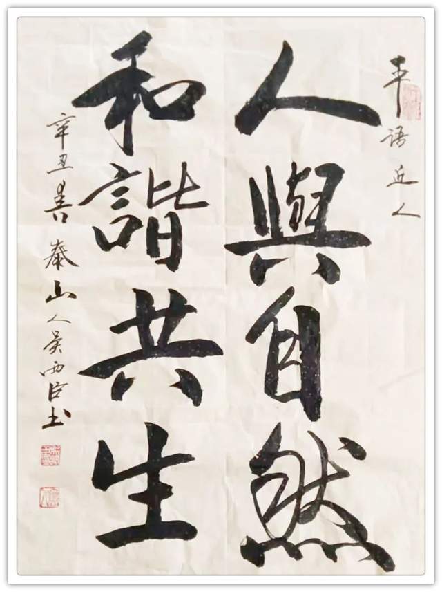榜书的创作技法虽也是经由笔墨所成,但其创作难度却是要比我们常见的五体书法难得多,常人习书或以五体书法为善,但倘若使其作于榜书,却又难堪此任,所以笔墨未至大气象者,实是不能将榜书之意挥毫尽显!而吴西臣先生则不同,作为当下榜书名家,其笔墨境界早已是深入高法!