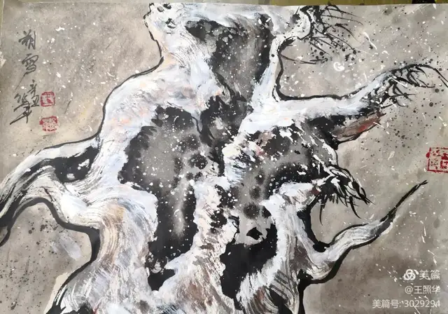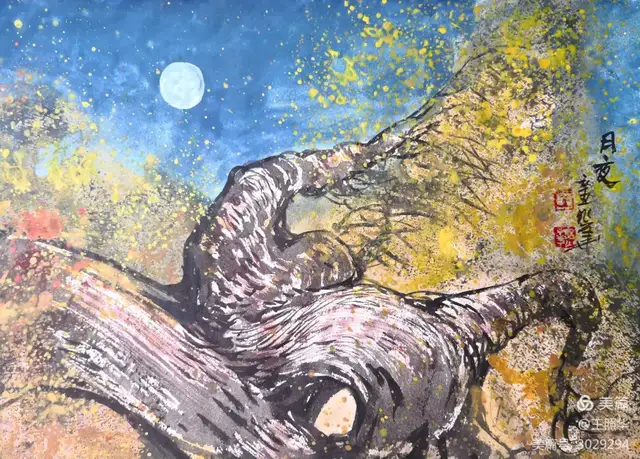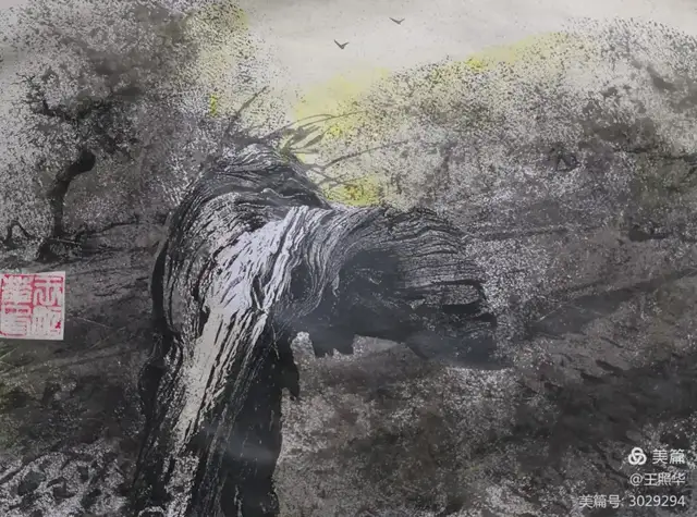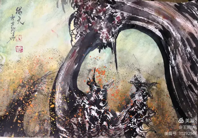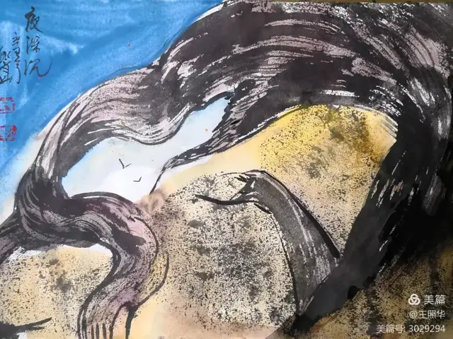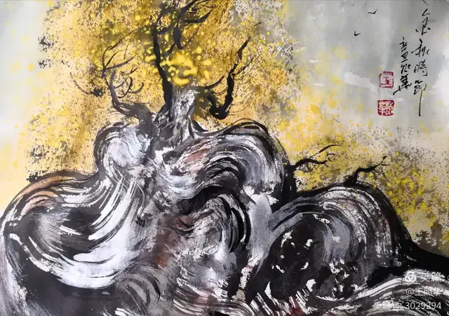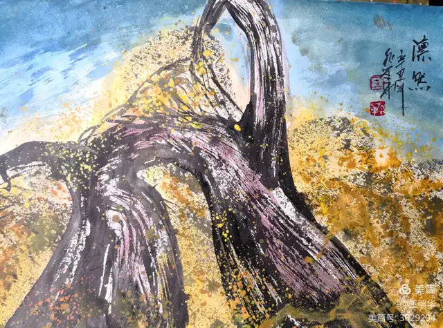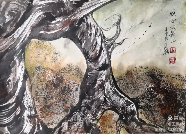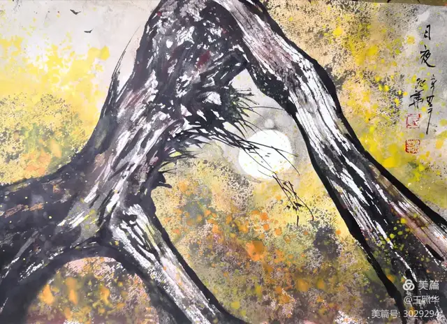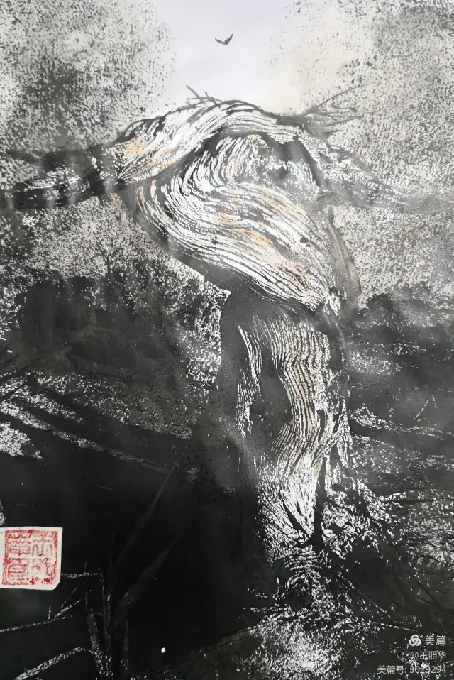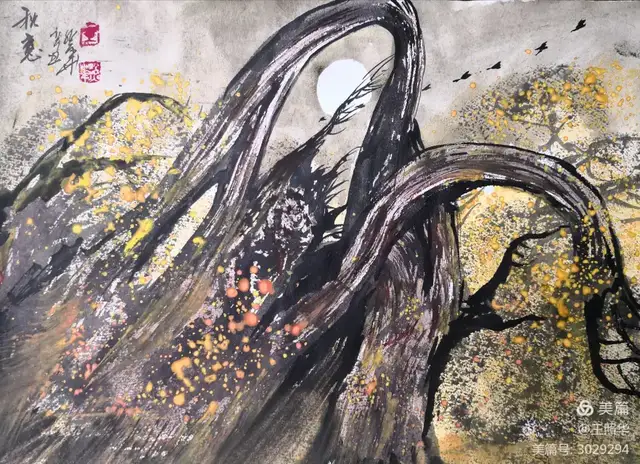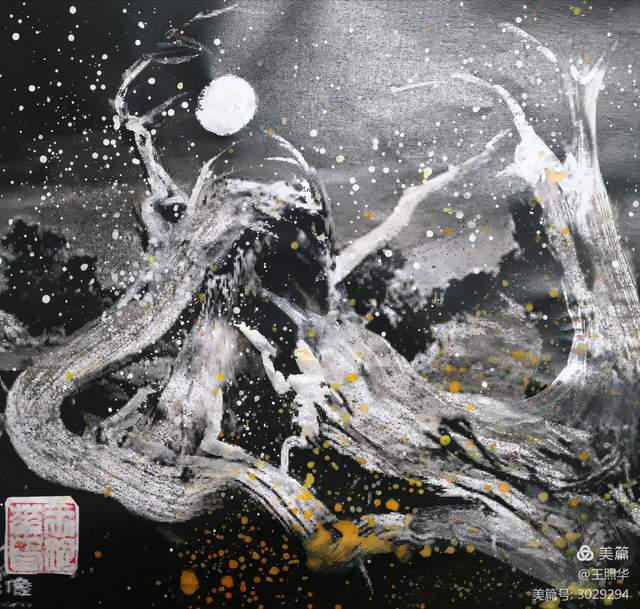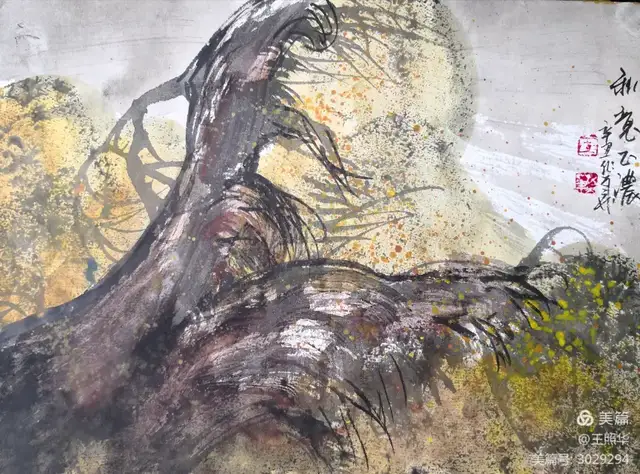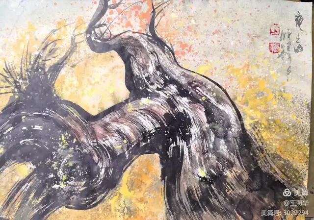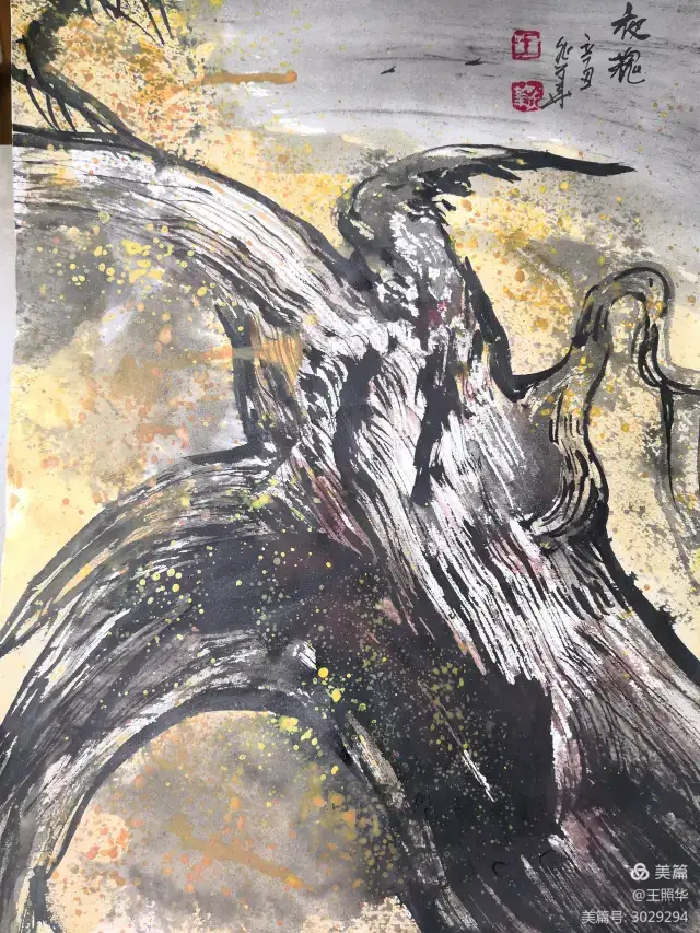 王照华老师的胡杨画由目视到心视,画里有胡杨,胡杨画中有胡杨精神,用笔墨唱响了一支对胡杨精神的颂歌。画家王照华以笔墨功夫和精神气质互为表里,通过基本功的磨砺呈现出的笔墨结构之美,通过蒙养人格等修炼笔墨结构承载的精神力量从而达到“物我两忘、天人合一”。。好的笔墨结构有骨、肉、血,同时也承载着画家的精、气、神。