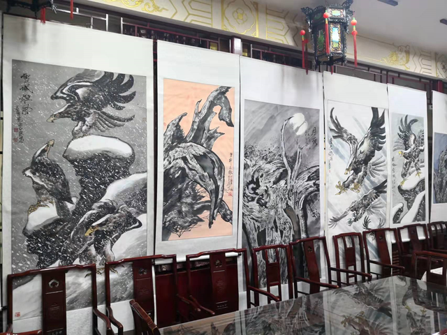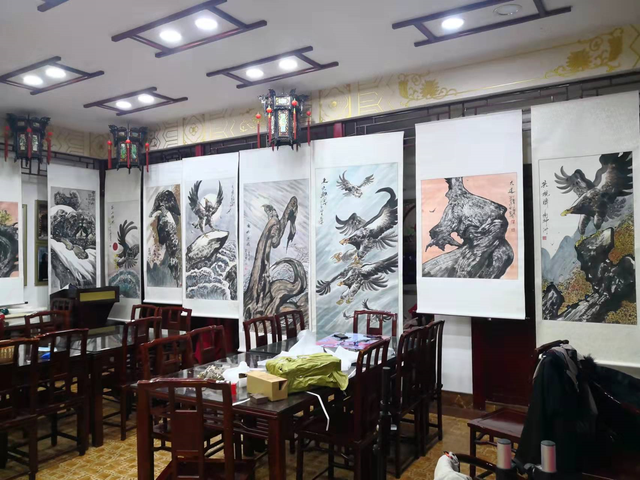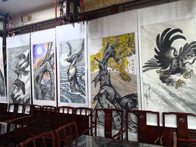 这次在大观园晨光茶社举行的画展,共展出王照华先生雄鹰、胡杨为主题的新作四十余幅,从三月五日开始,共展出一个月时间。