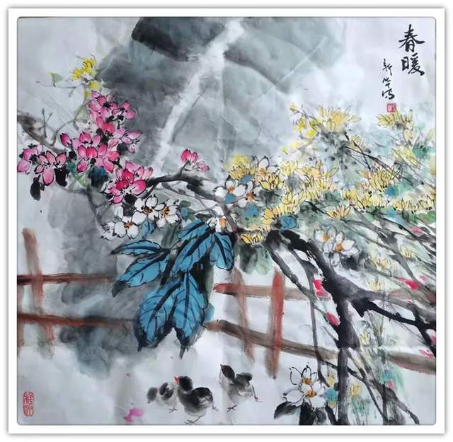 无论是从专业技法的角度来说,还是从悟性和创造性的角度来说,易女士的丹青造诣确实是超过了当今大多数的花鸟画家,她的作品画面,呈现出的是花鸟世界的和谐,不同的花景,有着不同的情趣盎然,时有衬托的小鸟与雄鸡,相映成趣,画面效果得以更加的轻松愉快,妙趣横生。写意花鸟,写的是意,展的是情,而作品中情趣的高低浓厚,又与画家本人的艺术修养是离不开关系的。如今易女士的艺术修养,显然是十分浓厚的,所以她的众幅花鸟作品,才能在素纸之上,将人文情趣发挥到极致,而其作品中所带有的艺术印记,也能让观赏者在一眼之间即可看出这是易女士的作品。个性特质,情趣不凡!