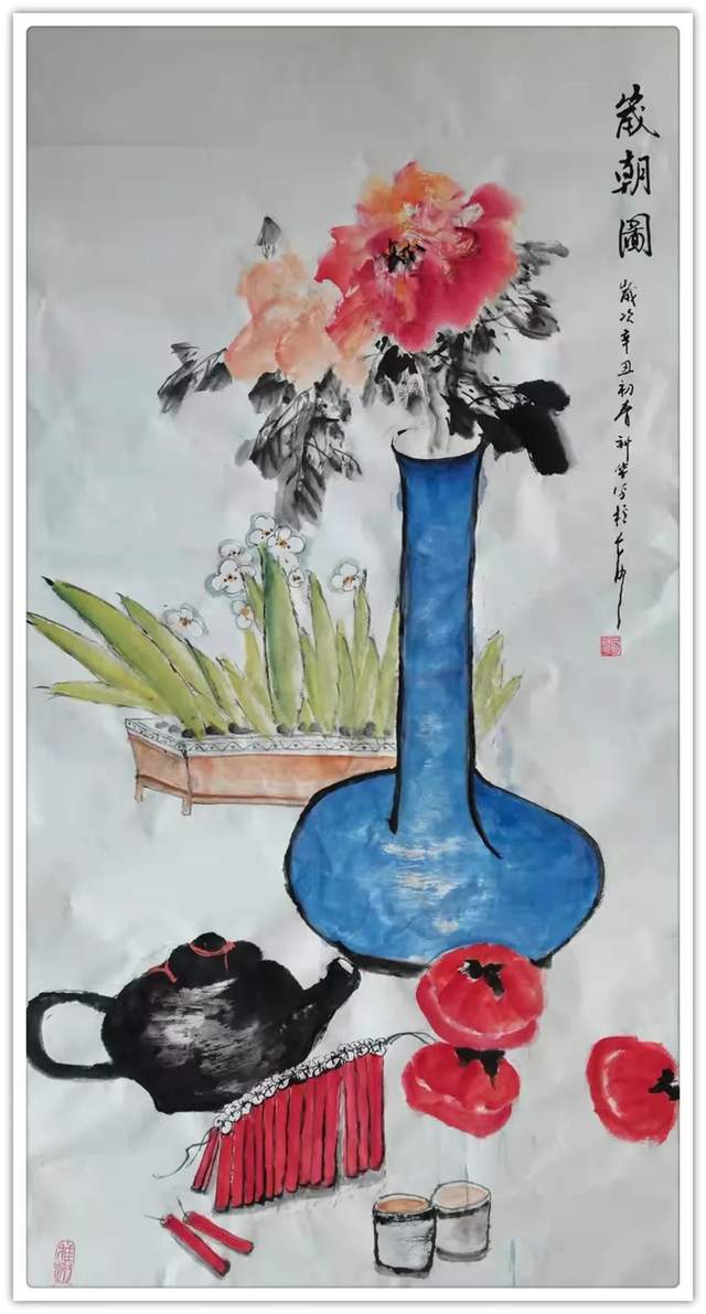(12)国画《迎新春》参加省直机关“颂歌献给党"庆中国共产党成立100周年书画展为入展作品;