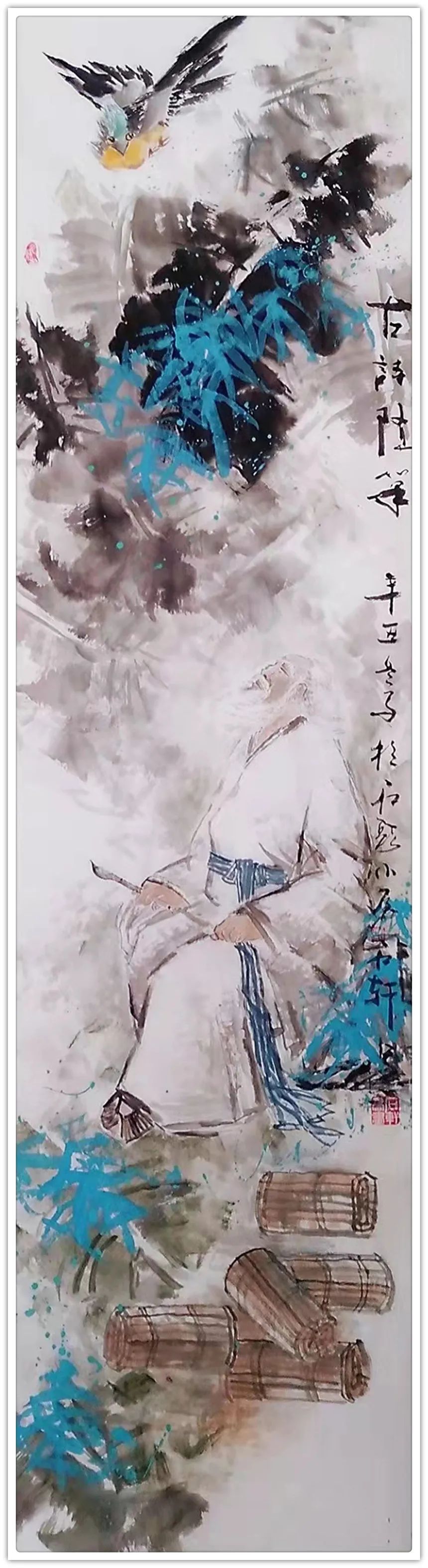 郭石轩老师,本名郭世选,陕西省洛川县人。他多年来在县文化馆从事群众文化辅导工作,桃李遍布,很有成就。除了馆务工作外,他还全力钻研书法绘画艺术,多年来坚持不懈,精诚所至,金石为开,终自成一体。他的艺术才华特别表现在写意水墨画方面,具体体现在绘画的构思布局与着色渲染上,他汲取了古代文人画师和现代国画艺术大师名家画家绘画风格和技法之长,让他形成了自己独特的书画艺术风格。他的作品笔墨构图中蕴含着音律的节奏,简括潇洒,以简驭繁,表现出了空明澄澈的韵味和意境。