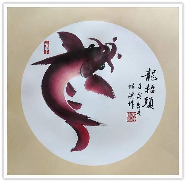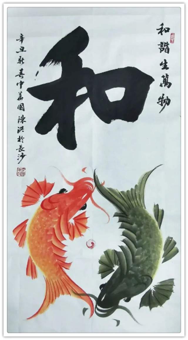 鱼是东方文化最为吉祥的物象之一,陈洪画鱼寄吉寓祥,有相当接地气的文化魅力。庙堂收藏他的大气魄鱼题作品,鱼写龙腾,笔墨画鱼亦是大画中国梦!梦想成真,鱼化龙!所以他的许多大题材鱼画作品,在国家级博物馆、展览馆、文化机构广有收藏。如若境界不高,法度不精,必然没有国藏资格。如今看他的作品收藏的层次之高,足以可证他画中华鱼题,法不欺人,功不欺世。