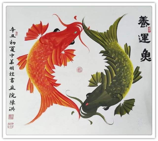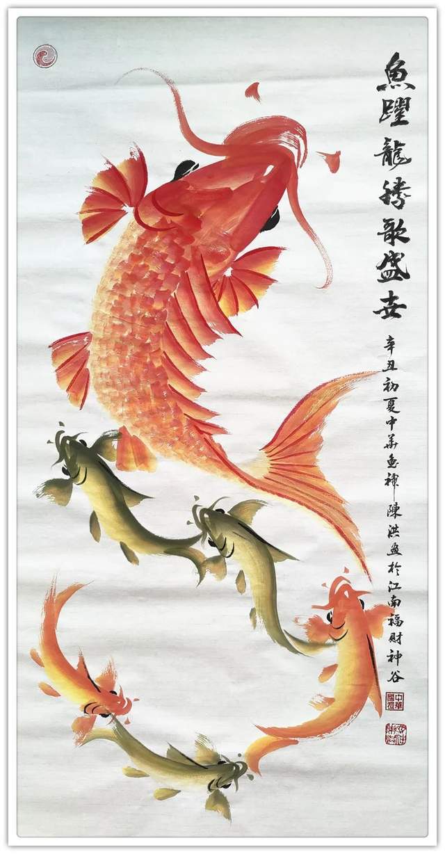 唯有传承不作创新是画奴,亦称画匠。奴匠者毫无建树,笔墨碌碌。反观陈洪先生的鱼画作品,除了有传承的精湛之外,还有创新的精彩!空间塑造感觉被“打开”到了极致,这是亘古未有的大空间塑造成就。俗笔画小品鱼,小滋味。他画文化鱼,大见地!墨里融彩,干湿相兼,鱼的动感与质感都拔升到了新高度。陈氏之法,一目了然!独家功夫,真实不虚。