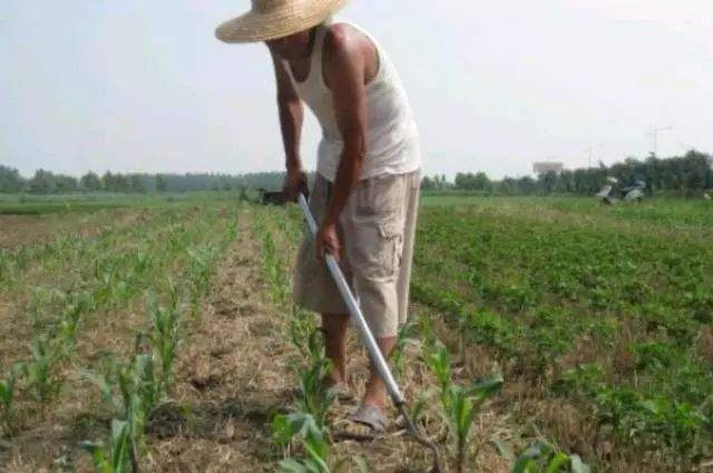 锄地更累人的活儿是耪麦茬。玉米在一拃高左右时,锄第一遍,用小锄,间苗。在一尺左右高时,锄第二遍,就是耪麦茬,又叫锄两遍棒槌。玉米地里杂草特别茂盛,锄草时受到麦茬的阻碍,不容易锄干净,所以要把麦茬锄出来。麦茬露在地面四五指高,钻入地下的根须茂密,锄出来不容易,这一次必须用大号锄头。