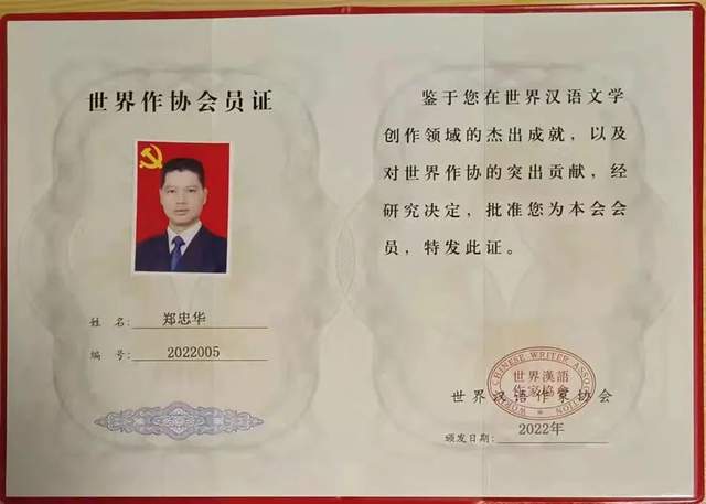 现为:中国教育学会会员、中国书法家协会会员、中华诗词学会会员、中国楹联学会会员、中国书画家协会副会长、中国国画院书法研究院秘书长、中国剑光书画院理事、中国新时代档案库会员、世界汉语作家协会会员等。书法作品入编《走进艺术大师》、《中国文化艺术人物年鉴》、《中国当代文艺名家名作年鉴》、《大国崛起》等几十本书籍,诗词作品入编《中国当代诗歌大辞典》、《中国当代爱情诗歌精选》、《中华诗词集萃》、《中华诗词歌赋文学精英大辞典》、《四十年华语文坛精品汇编》、《诗中国杂志》第40期、《韵墨情雨三部曲*千里思乡情》、《中国现当代作家诗人大词典》、《感动城市的最美诗文》、《中国抗击“冠状病毒”网络前沿诗文典藏》、《感动中国的醉美诗文》、《中国网络诗歌年选2019》、《中国二十世纪诗歌备忘录》、《中国网络诗歌年选2020》、《世界名人录》、《中国当代传世诗文大辞典》、《共和国诗人》、《建党百年.文坛先锋作品珍藏版》等几十本书籍。部分作品在《当代文学集萃》、《燕京文化交流》、《文学中国》、《中华诗歌报》等网络平台发表。出版书籍有《郑忠华书法作品集》、《诗意人生--郑忠华诗文精选》。有网络作品推广《诗意人生——郑忠华诗文第一部》、《诗意人生——郑忠华诗文第二部》、《诗意人生——郑忠华诗文第三部》、《诗意人生——郑忠华诗文精选(50首)》、《为生命创造奇迹——郑忠华诗文选》、《郑忠华散文网络展》、《郑忠华诗文、书法作品联展》、《2019年郑忠华诗词散文》、《2020年郑忠华诗词散文》、《生命的轨迹——郑忠华诗文选》、《让生命充满色彩——郑忠华诗文选》、《2011年之前的诗——郑忠华诗文》、《郑忠华诗文音频制作选用(43首)》《做最出色的自己——郑忠华诗文欣赏(50首)》、《活出人生的精彩——郑忠华诗文欣赏(50首)》、《好好爱自己——郑忠华诗文欣赏(50首)》、《鹰的重生——郑忠华2021诗文欣赏(50首)》、《最美的遇见——郑忠华诗文欣赏(50首)》、《是鹰就得飞翔——郑忠华2021诗文欣赏(50首)、《舞出人生的精彩——郑忠华2021年经典诗文欣赏(76首)》、《激发心灵的力量——郑忠华诗文欣赏(50首)》、《精彩纷呈——郑忠华诗文欣赏100首》、《精彩人生——当代知名诗人郑忠华作品集》。百度搜索:郑忠华诗文、郑忠华书法。