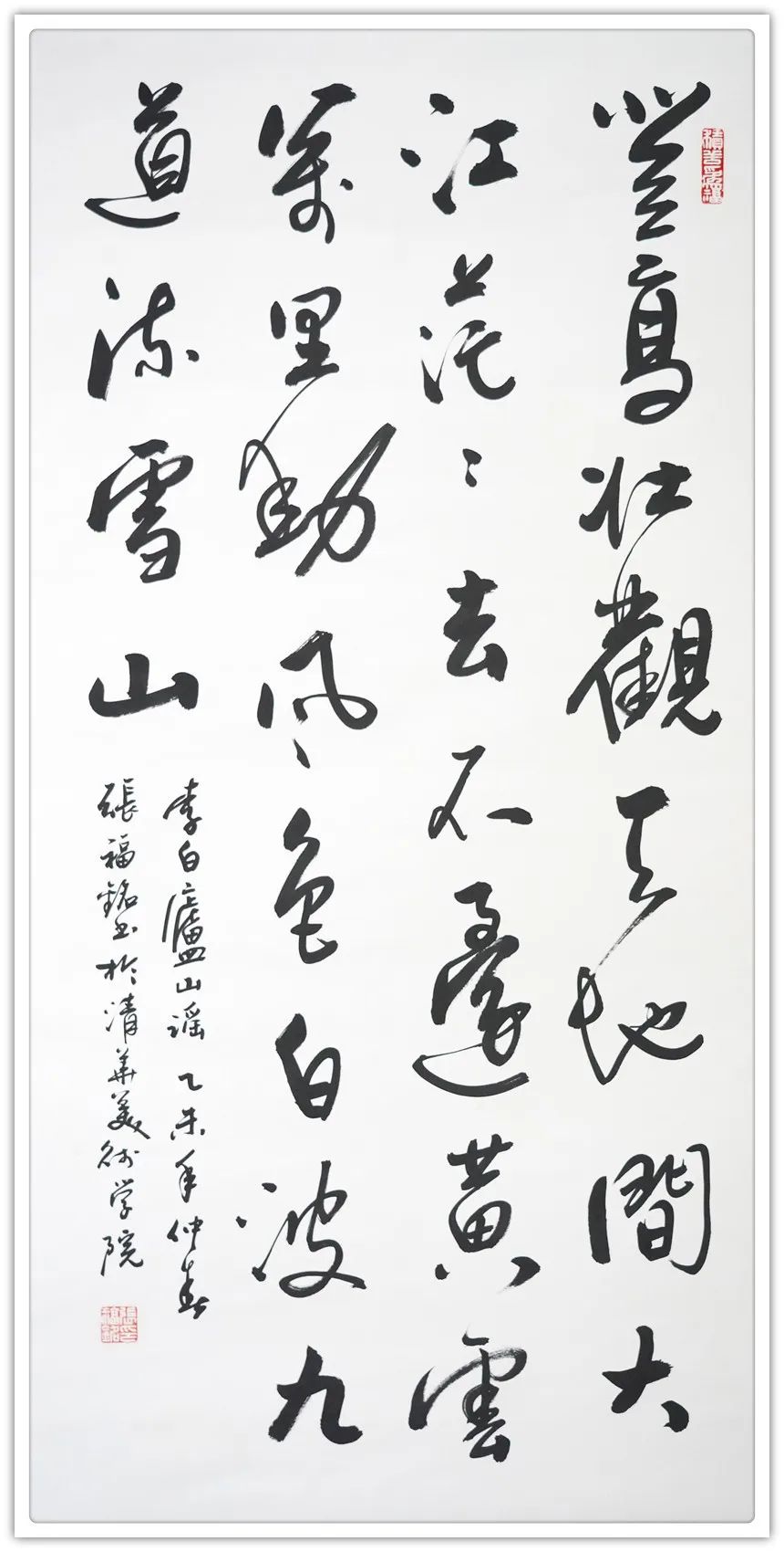 张福铭,笔名鲁剑,沂蒙山人。1950年出生于山东省莒南县西田庄,1968年参军,历任排、连、营、团等职。1982年毕业于石家庄军事教育学院,并留校任校刊杂志社美术编辑、摄影记者,1994年转业到地方工作。曾就读中国书协、中国美协高研班,广州美术学院国画系周彦生导师花鸟画高研班,首都师范大学中国书法文化研究院硕士研究生课程班,中国美协第十六期花鸟画高研班,中国书协李双阳导师高研班,天津美术学院贾宝珉导师花鸟画创作班,中国国家画院詹庚西导师花鸟画高研班,清华美术学院郭石夫导师花鸟画高研班、王阔海导师新汉画高研班、王奇寅导师新水墨花鸟画高研班、李振东导师冰雪画高研班。多年来,有幸得到恩师欧阳中石先生的亲切教诲和著名书画家赵久长、周彦生、方楚雄、贾宝珉、霍春阳、王培东、刘守安、李双阳、詹庚西、郭石夫、王阔海、王奇寅、李振东等导师的精心指导。先后在50多家报刊发表书画作品1300余幅;10幅书法作品被翰园碑林、黄河碑林、尚志碑林刻字制碑;出版《军旅画家十人作品集》、《大美中国》个人专辑、《张福铭画集》、《鲁剑书画集》、《张福铭书画集》、《张福铭扇面作品台历》等8册书画集;其传略、作品入选60余部辞书;广东省电视台拍摄了“四栖艺术家”专辑和《逐梦》栏目组拍摄了“翰墨铸情写心声”专辑;山东省莒南县广播电视台摄制的《天南地北莒南人》专辑。并应邀参加中日韩书画代表团首尔美术馆书画作品展,中国海峡两岸书画家南宁国际会展中心书画作品展等30余次大型书画作品展;在广州、东莞举办个展;《世界报》、《中国书画报》、《羲之书画报》出版专版;被授予慈善艺术家,21世纪世界华人书画艺术500杰;荣获2018年、2020年、2021年全国两会“人民艺术家”称号;荣获第十八届、第二十届中国世纪大采风“中国当代德艺双馨艺术家”称号;荣获广东省人民政府“改革开放四十周年文化建设功勋人物”称号;荣获“国家非物质文化艺术传承人”称号;荣获“中国文化艺术贡献人物”称号;荣获“中国首届书画艺术牡丹奖”。36幅书画作品入编四部中国邮政个人珍藏版专集和美国邮政部门发行的邮票;国画作品《三友图》被广东省文史研究馆收藏;书法作品毛泽东《登庐山》被国家博物馆收藏。部分作品被美国、日本、韩国、港澳台博物馆、美术馆和友人收藏。现为中华翰墨书画院、广东省荷韵艺术书画院院长,中国书法家协会会员、中国美术家协会会员、国家一级美术师、国礼特供艺术家、全国企业社会责任书画传承中心顾问、文化部高级书法家、文化部高级美术家、中国老年书画研究会创作研究员、中国书法家协会书法考级注册教师、中国教育电视台水墨丹青书画院副院长、清华美术学院艺术研究会理事、中央国家机关美术家协会理事、中国美术名家联合会理事、北京聚贤才书画艺术中心顾问、广东省人民政府文史研究馆馆员、广东省民俗文化研究会副会长、岭南诗书画会副会长、中央文史研究馆书画院南方分院书画家、广东省书法家协会会员、广东省美术家协会会员、广东省摄影家协会会员、爱达众家乐有限责任公司艺术顾问、广州全域影视传媒有限公司艺术顾问,享受国务院政府特殊津贴专家。张福铭的书画作品,清新明快,笔墨酣畅,风格独特,意境深远。是一位融书法、绘画、篆刻、摄影于一体的实力派书画家。