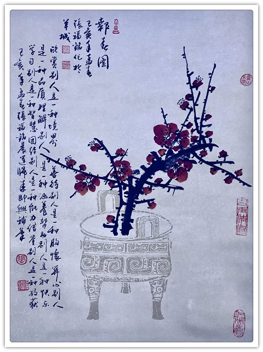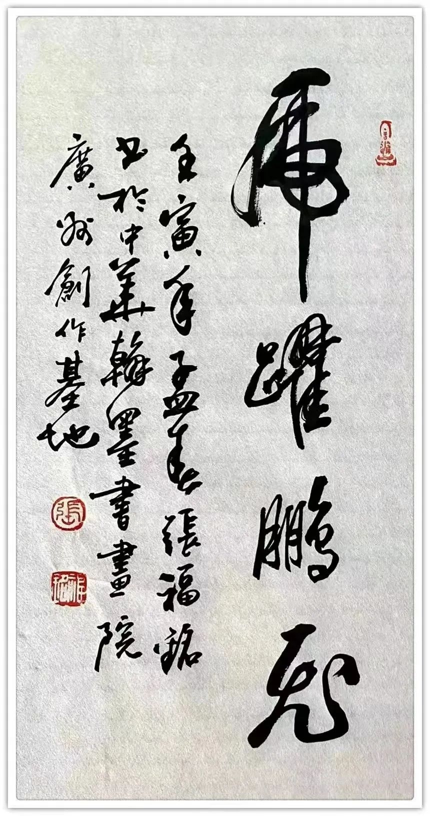张福铭先生正处于一位中国写意花鸟画家最为黄金的年龄段,他有着丰富宽广的生活阅历、谦虚好学的创作态度、坚韧不拔的性格特质、宽博厚重的心灵境界,我深信张福铭先生必将在今后的艺术创作中绘制出更加优异的作品,创造出更为丰硕的成果。(文:张廷波,著名书画评论家,中央美术学院中国画学院博士后,教授。)