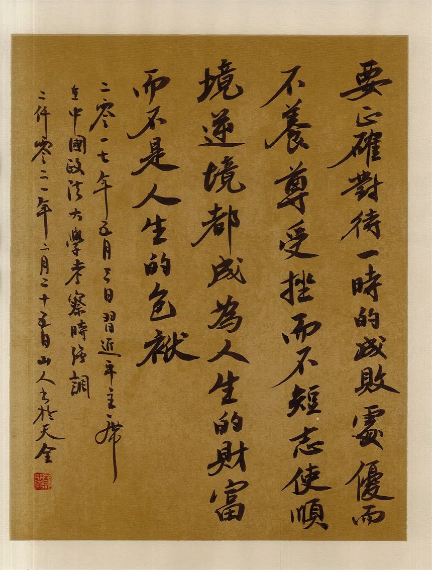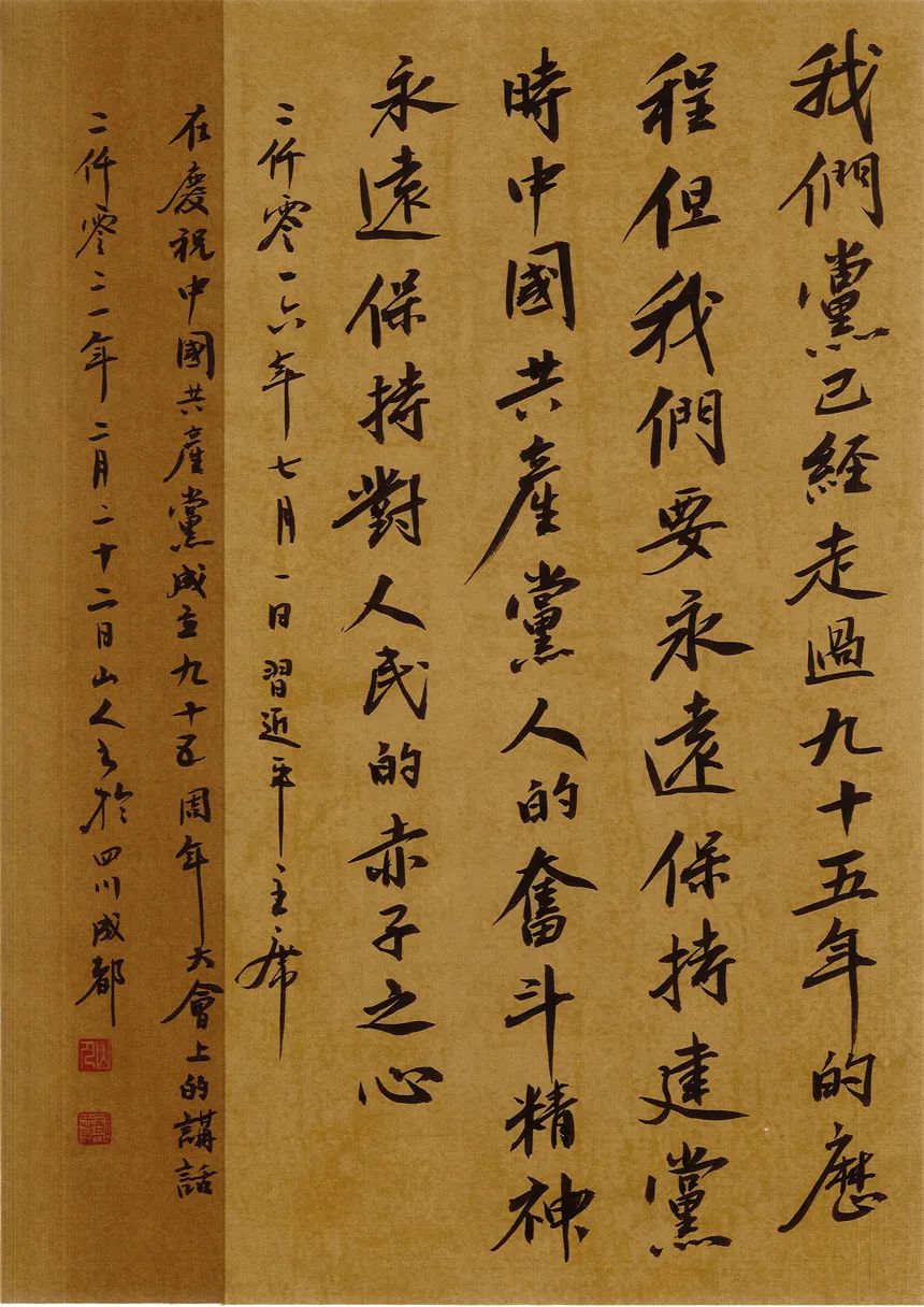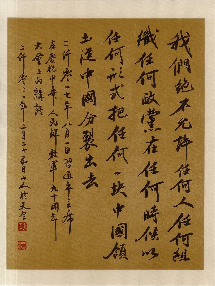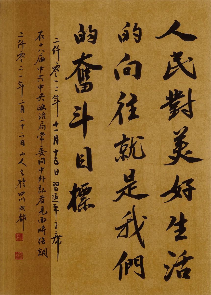 抑左扬右,高低有趣。郑忠华写书法,有心修于此,意泊于此的追求,可以拒绝一切烟火气,醉得笔墨写古风儒雅。却不拘泥,又善于写录政经文章,书以载道,刚柔相济。笔墨亦可以写铿锵,书言志,歌盛世!技与艺谐,名与功成!