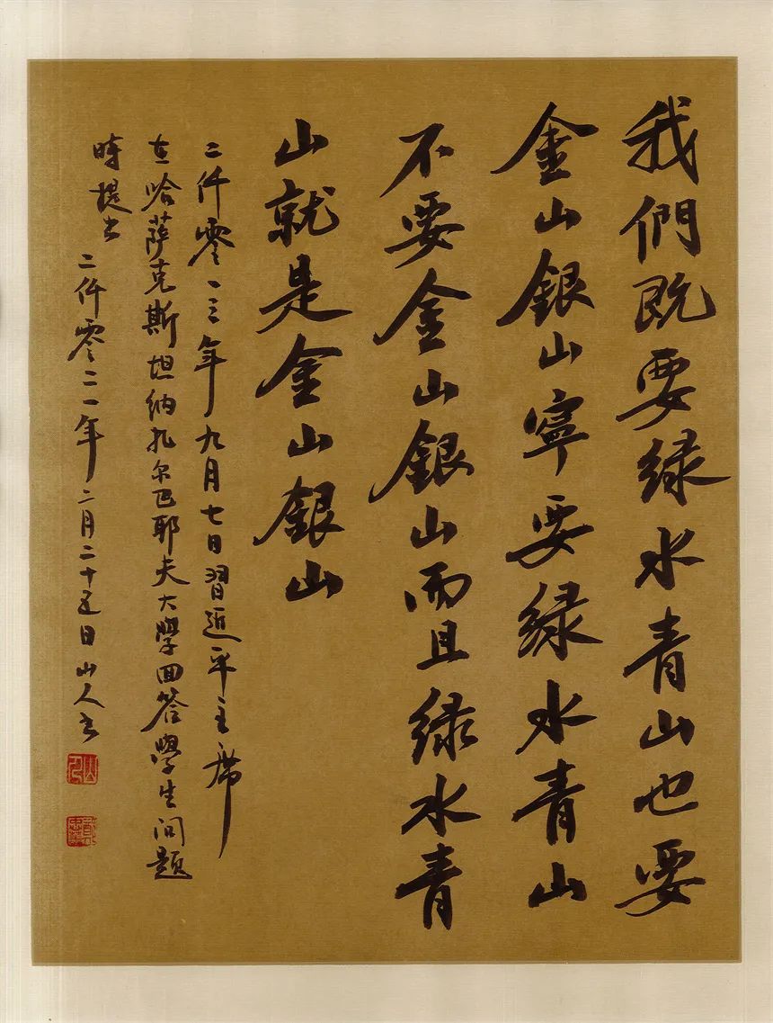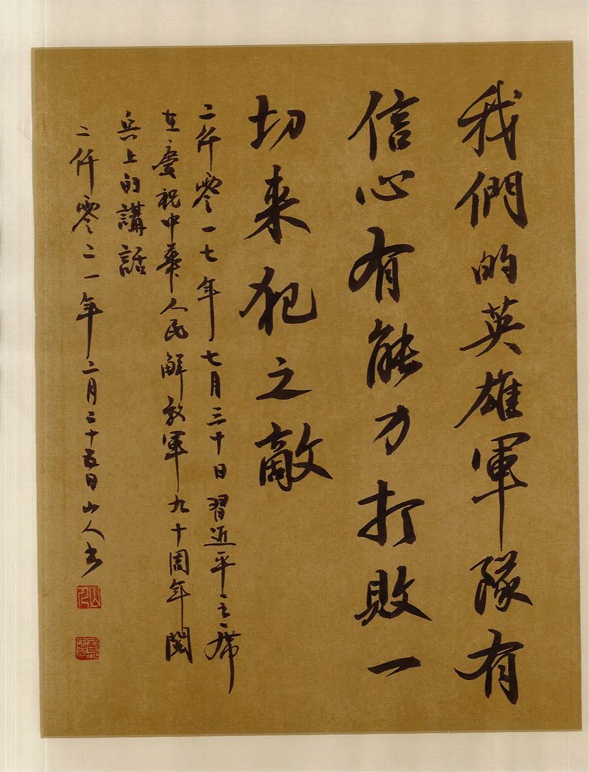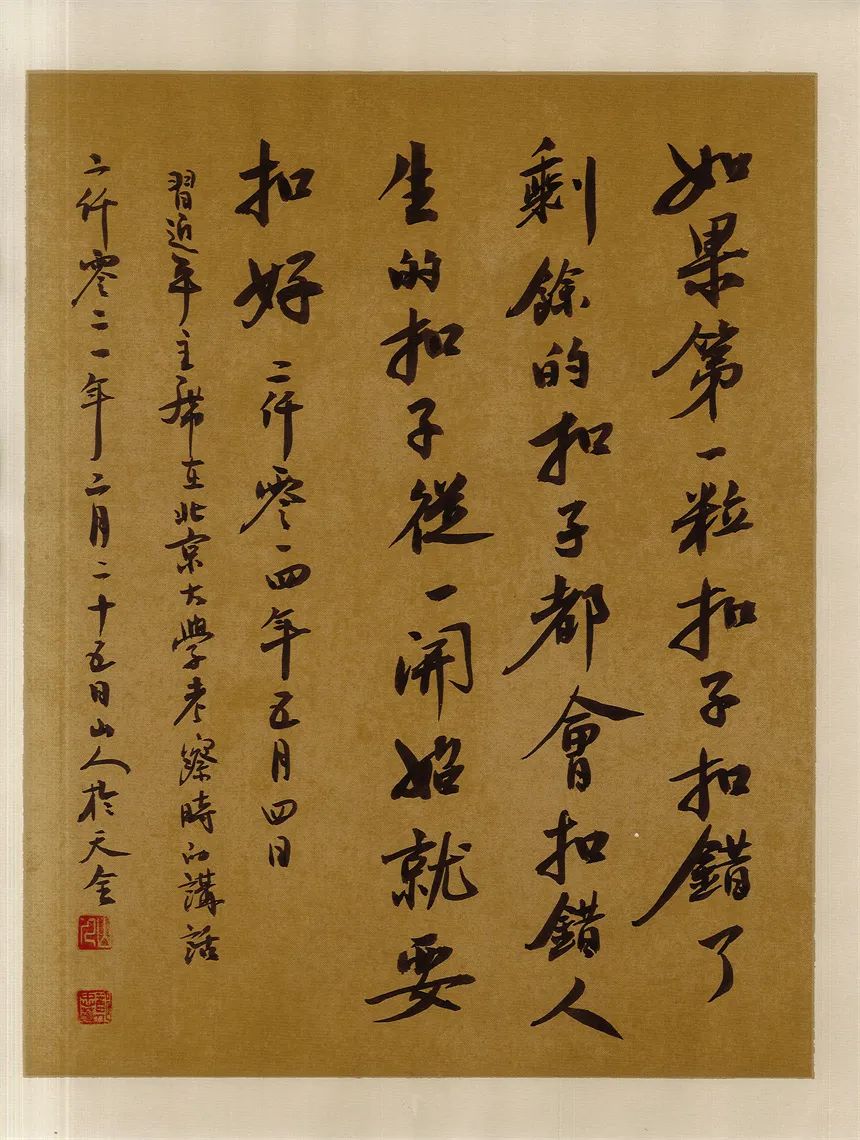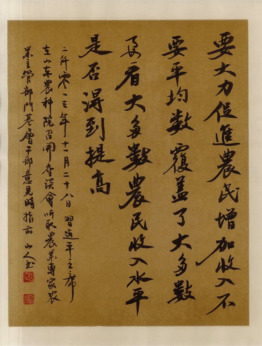 抑左扬右,高低有趣。郑忠华写书法,有心修于此,意泊于此的追求,可以拒绝一切烟火气,醉得笔墨写古风儒雅。却不拘泥,又善于写录政经文章,书以载道,刚柔相济。笔墨亦可以写铿锵,书言志,歌盛世!技与艺谐,名与功成!