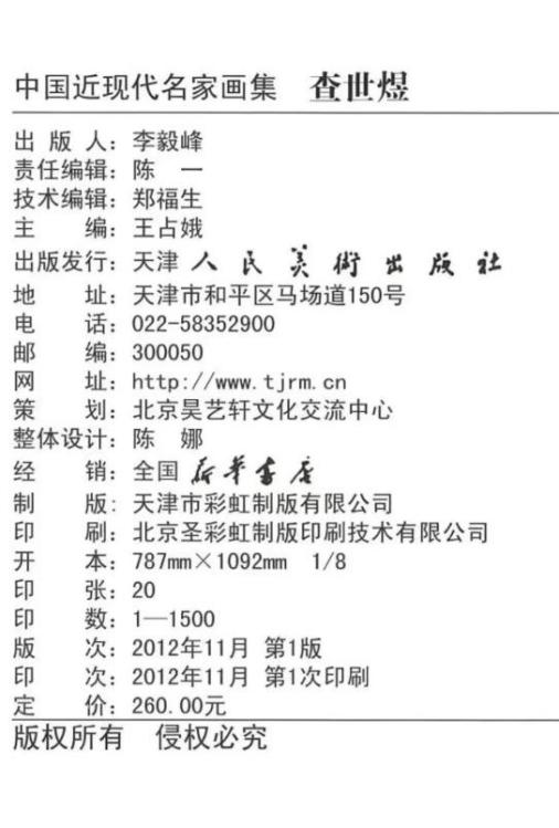 2012年,天津人民美术出版社出版了查世煜大红袍专集《中国近现代名家画集——查世煜》,在全国新华书店发行;大红袍作为国家最顶级、最权威的画册,代表着画坛至高荣誉。凡入选大红袍的艺术家,必是国宝级艺术家,也必是对中国美术界做出突出贡献的佼佼者。凡能出版大红袍画集的画家留芳百世,能入选大红袍画集的大师,其作品无一不在后市上屡破天价。