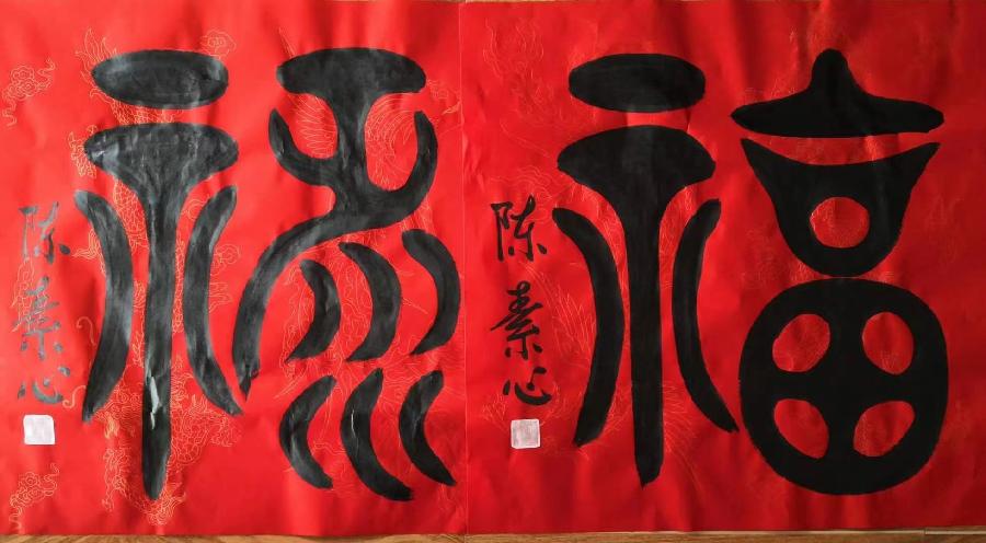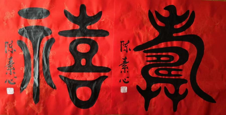 陈素心,女,1941年生于朱熹故里福建尤溪县,现居厦门同安莲花与莆田,她是当代著名书法家、文化学者,社会活动家、文物鉴藏家,台湾师范大学教授,103岁人瑞陈大络教授长女,现任华夏文化促进会陈氏委员会第一届理事会、莆田市文峰宫常务理事,妈祖义工艺术团诗书画院常务理事等职。她从小与祖母唐珠云相依为命。1958年任尤溪县城关幼儿园教师,后被下放劳动,曾从事幼儿工作多年,1983年光荣加入中国共产党党员。其父陈教授于1999年6月6日,从台湾回大陆与长女团圆,陈素心尽孝仪之心,承蒙父亲教诲,指导书法练习,多年临池不辍,精研古帖,形成了自己独特的书法风格,书法作品先后频频参加名人书法展,多年来,她为祖国部分省市创作颂词、风景区联句、千福图等近千幅书法作品。2019年她偕同102岁的父亲参加厦门海峽两岸书画名家笔会。她书写的大篆斗方福、祿、寿、禧深得行家好评,两岸有关媒体作了报道。2020年2月,陈素心获悉厦门市政协办公厅和厦门市红十字会联合举办“同心战‘疫’•翰墨传情”书画作品义捐活动消息,她马上联系主承办方张雄艺术网负责人,捐赠了她的大篆体书法斗方作品“同舟共济 众志成城 中国必胜武汉必胜——岁次庚子新春陈素心书” (85cmx66cm)。2019年12月,知名书法家陈素心个人名录被编入新出版发行的北京系列丛书《共和国骄子》(2019年卷)。 2020.02.20.于厦门大学逸夫楼