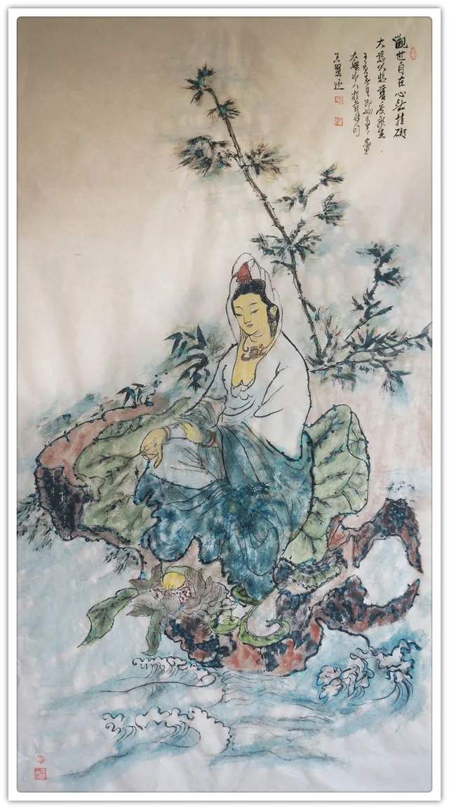 用修养作根基,用修行为进取,王翼迎先生创作丹青作品,可以令世尊在不经意间显观三十二相,可以画菩萨行深显智慧。对观赏者来说,这种见素抱素的画风,很容易去掉眼前的浮尘避目,通过观赏绘画作品,而渐觉禅的真谛。王翼迎先生深谙经论律,所以他执笔创作佛教题材作品,改变了华丽的造型范式,走进了依笔作画,同时也会用心作画的境界。心若无尘,则笔墨纤尘不染。