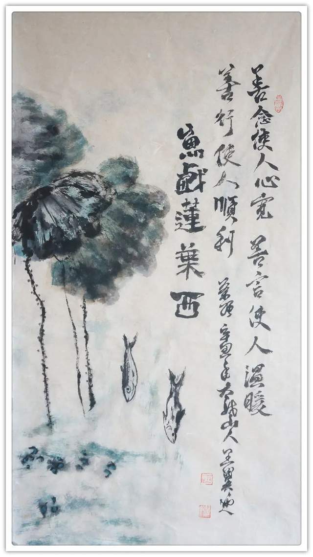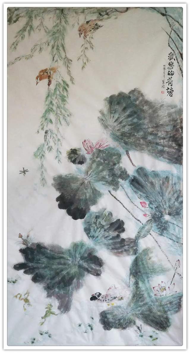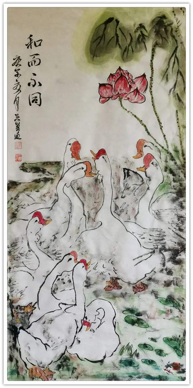 花鸟《和(荷)而(鹅)不同》作品39x138cm