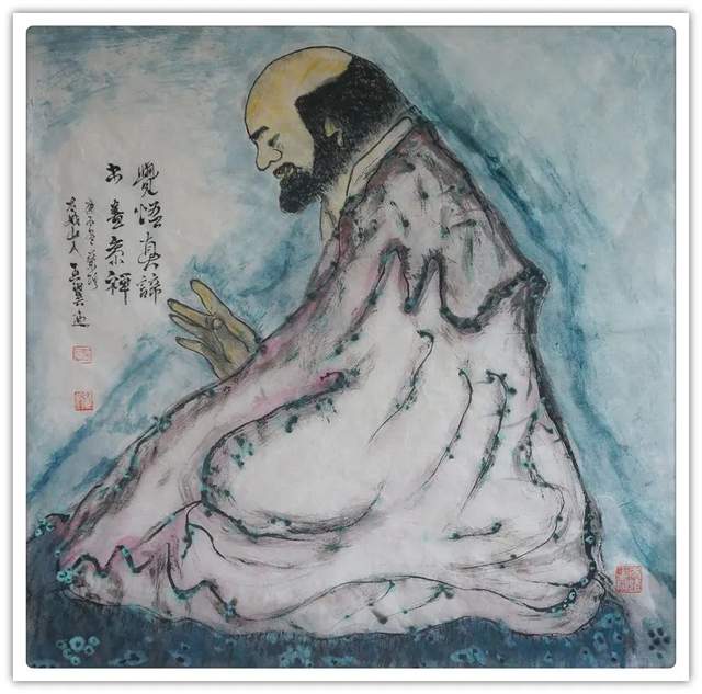 心外无物,他可以把自己对不住色声香味触法的真实觉悟,写成画里的无量证见。南北东西上下四维虚空不可思量,王翼迎心驻禅机可渡彼岸,是一位有证有见的修行者,本来了无烦事大自在。但是,他知世人有八苦之累,求不得、放不下的心绪实在不得解脱。于是,王翼迎愿意回身渡人,通过画佛教题材作品的方式,以成法布施的巍巍功德。然,画为方便,不为华丽,所以其佛教题材作品都取向了无所住而生心的形神,让人一眼望见,可以经脑入心,从而迎见一个真实不虚的三千大千世界。把他的这些佛教题材作品反复琢磨,不但可以心生欢喜,并且可以更好地理解无我相、无人相、无众生相、无寿者相的内涵,从而可以在画里安心,在画外修证!这就让他的佛教题材作品,成为丹青写就的新经论!