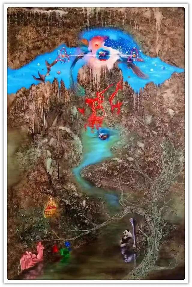 ———王珑澔认为精神性艺术创作与艺术创作个体的世界观和方法论存在因果关系,人类之所以伟大源于其精神性,艺术最需要天赋个性就源于精神,假如沉浸于远离精神的客观现实物质世界中的肤浅经验和视觉感受,就注定会陷进玩技巧的匠人主流文化圈层的游戏。对于精神性艺术创作而言,探寻宇宙本源,生命存在的意义和人类内心世界才是艺术未来发展需要的,精神性艺术创作是探索表现生命现象在宏观世界与微观世界多维度宇宙的空间里的精神性呈现,也可以认为是人类追求科学进步的思想启明灯。