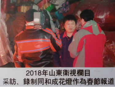 周村花灯制作技艺现被为市级非物质文化遗产,李卫东当选为淄博市花灯协会副主席;他传承创新、授徒传艺,成立传统花灯博物馆,把“同和成”申请为国家注册商标。