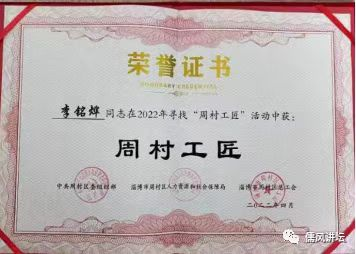 李铭烨被授予“周村工匠”;荣获“齐鲁工匠”后备人才称号。