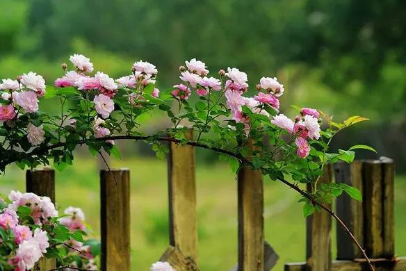 老宅杳然成记忆,蔷薇屋后照初开。