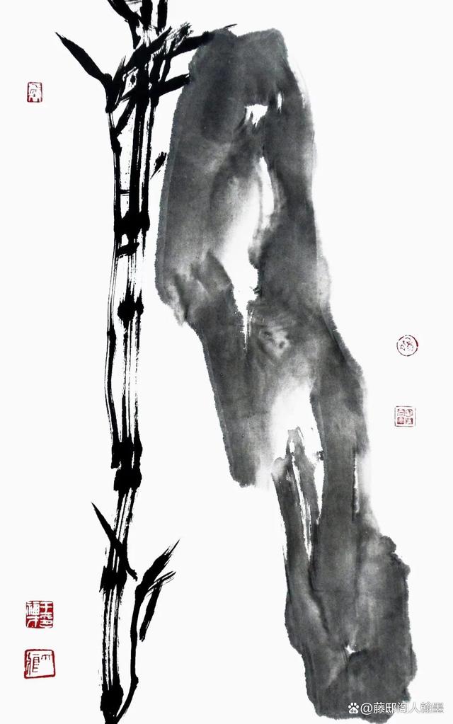注释:*与可,即文同,字与可,宋代著名诗人、书画家。“湖州竹派”创始人。《文与可画筼筜谷偃竹记》是苏轼阐述文同画竹论语。有“故画竹必先得成竹于胸中,执笔熟视,乃见其所欲画者,急起从之,振笔直遂,以追其所见,如兔起鹘落,稍纵则逝矣。与可之教予如此,予不能然也,而心识其所以然。”*绿卿、朱筱,即竹的雅称。