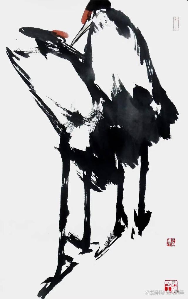 王福才·中国画《双鹤·窃窃私语》