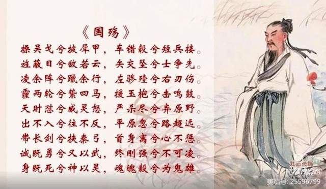 壮哉!千百年来,灵均爱国。肝胆洁白,白如雪莹。清忠硬骨,硬似坚冰!披明月,佩兰芝,挂腾空。路漫漫其修远兮,吾将上下求索。深思入大海,大海难装战策,高举凌重霄,重霄难荡征旌。沧浪之水浊兮,可以濯吾足,沧浪之水清兮,可以濯吾缨。腰非弯折,昂首挺胸,丹心高挂。目不旁视,奋勇向前,正道直行!