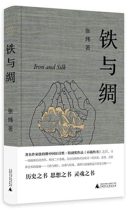 在读者心目中,张炜多被视为以小说家名世的作家,但在他眼中,诗歌才是其创作的精神核心、着力点和最大发力点,始终把诗歌当作写作的终极目标。近50年的写作历程,张炜始终葆有一颗诗心,已出版诗集13部,如《皈依之路》《家住万松浦》《夜宿湾园》《归旅记》《费加罗咖啡馆》《不践约书》等。近期,连续在广西师范大学出版社·纯粹Pura推出两部长诗力作——《不践约书》和《铁与绸》。其中,《铁与绸》系作家张炜从构思到写作耗时30余年打造的一部长诗力作。该诗集分为十六章,包括《 向东方》《古莱国客栈》《七兄弟》《山楂树下》《东夷渔火》《颜色颜色》《齐姜之美》《国王的后宫》《锻剑》等篇章,以作家所熟识的古齐国特定历史文化空间为背景,穿越于古齐国与当今社会,融古代文明、海滨文明和现代文明于一身,用诗的形式完成历史和文化的艺术超越。与其以往诗歌作品相比,《铁与绸》更具史诗性和纯诗性,可以说是一部贯通传统文化和现代主义的重磅力作。著名诗歌评论家唐晓渡称之为“一部传奇式的个人心灵史诗”。著名诗人欧阳江河表示,“这部长诗的写作和出版,是中国诗歌界一个非常重要的事件——把它称之为事件,我想是不过分的”。需要特别指出的是《铁与绸》特邀著名艺术家冷冰川专题创作,由全国装帧设计奖、“中国最美的书”获得者——著名设计师鲁明静倾心打造,在内容上是一部历史之书、思想之书和灵魂之书,在内容和形式呈现上是一部下足功用的收藏级精品——布面精装、剑形书签异型模切、签名钤印等综合呈现,作家张炜表示是在自己所有出版作品中在书品层次上最为满意的著作之一。