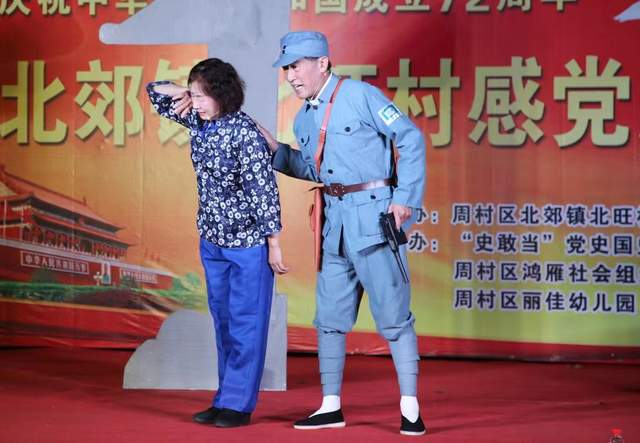 忆昔,他既有目标又有行动。他情感真挚,虔诚好学,认真揣摩,把生命融入了朗诵之中,水平日新月异。炽热奔腾之情怀;心底发出之声音;撞击灵魂之演绎;陶醉人心之朗诵。请听:“哎,远去了,远去了,那激情燃烧的岁月,远去了,我那战火中的青春,所有的一切,所有的一切都已经远去了,可是战友们,我总是在梦中见到你们……”他身着军装,以一位老兵的角色,激情澎湃,把老兵的心声表达得酣畅淋漓,现场观众沉浸其中,接受了心灵的洗礼。当朗诵达到高潮时,他拼劲全力慷慨激昂地高喊:“听!战斗又打响了,全班上刺刀,为了新中国前进!!” 似万炮齐鸣,欲有震耳欲聋之势。台上他老泪横流,台下观众掌声雷动。高尔基的《海燕》大气磅礴,但不好把握,他却迎难而上,精雕细琢,朗诵充满激情,台风稳健大气,令人刮目相看。他得意之作是配乐朗诵《今夜星光灿烂》;经典之作是在独幕剧《妈妈的骄傲》中饰演李主任,举手投足,颇有大家风范。