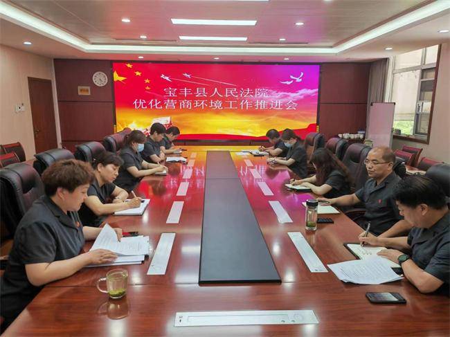 6月10日下午,宝丰县人民法院召开2022年优化营商环境工作推进会。会议由专职审委会委员王亚超主持,党组成员、派驻纪检组组长叶二伟,党组成员、执行局长叶鹏及院各部门负责人参加会议。