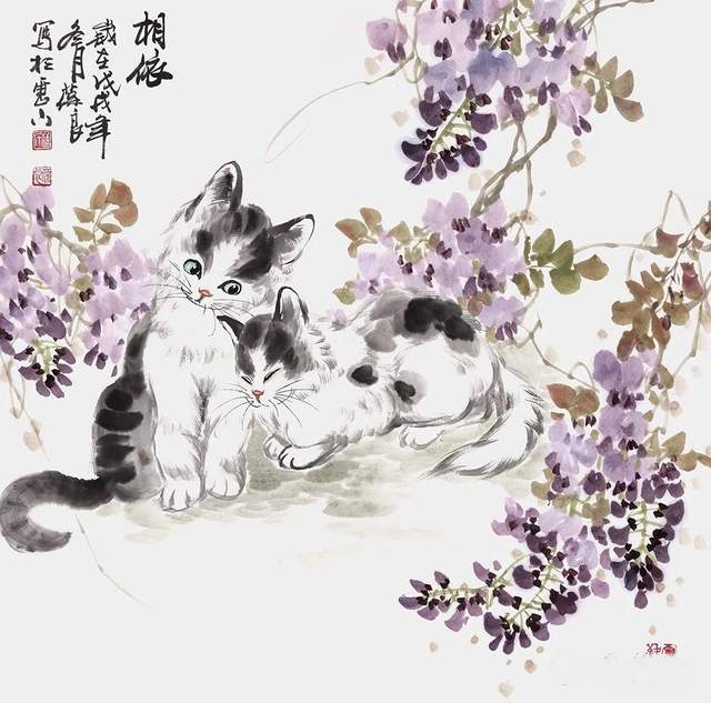 (图18 济南二中同窗晋葆良的书画《相依》, 照片源于网路)