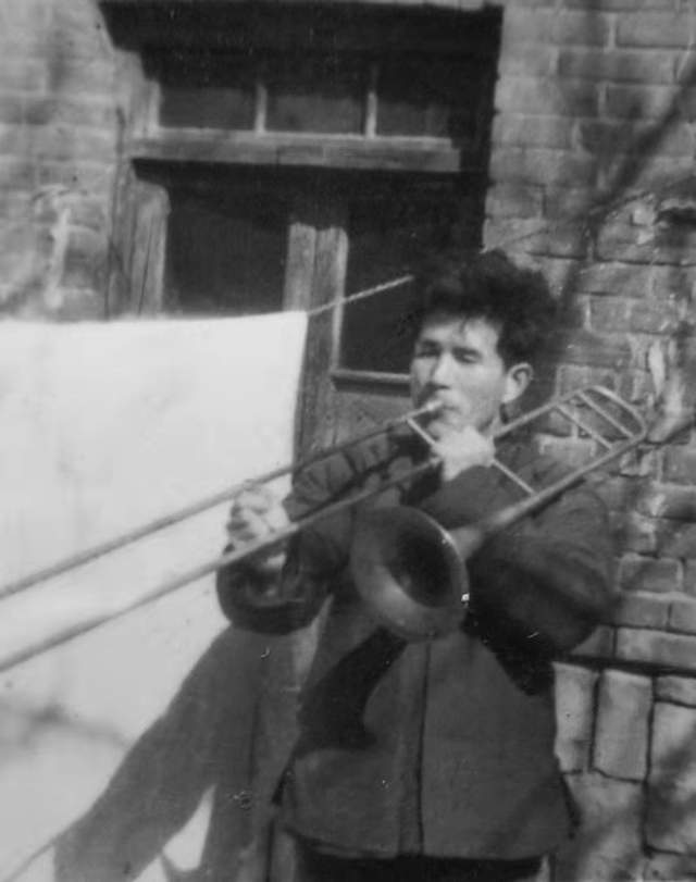 (图13 陶冶我老师60年代吹长管的照片, 学长秦玉海提供)