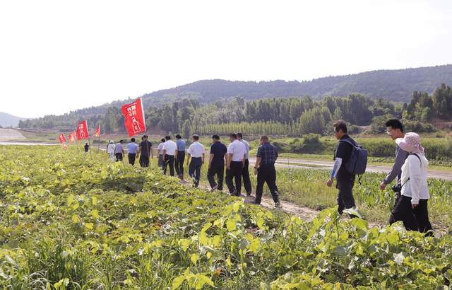 副县长赵鹏一边走一边与镇、村领导亲切交谈,细心询问种植情况,关注着乡村振兴。