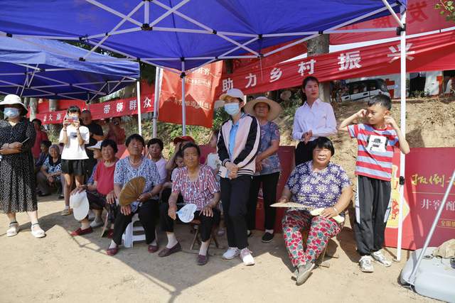 村民鼓掌加油,喝彩声不断,一派庆丰收的欢乐气氛。