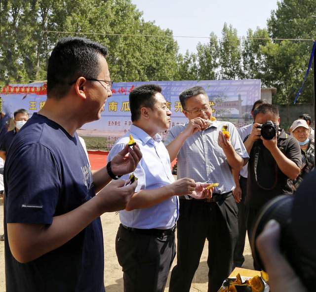 县融媒体中心领导与村干部亲切交谈,表示加大对王楼村贝贝南瓜的宣传力度,助力乡村振兴。