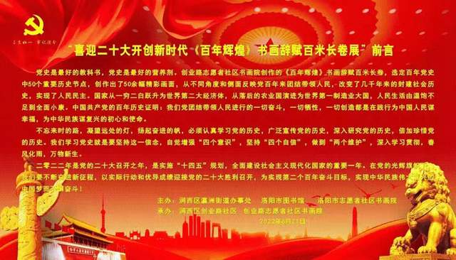 不忘来时的路,凝望远处的灯,扬起奋进的帆。六月二十一日上午九点三十分“喜迎二十大创造新辉煌《百年辉煌》书画辞赋百米长卷展” 在洛阳市图书馆 隆重开幕 !