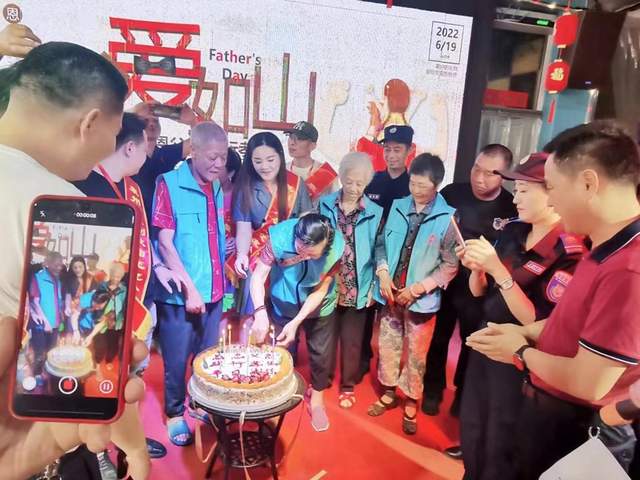 当活动进行到一半时,泉州市原创歌曲交流协会、晋江市义务救援协会的志愿者们共同为老人们切开蛋糕,并祝老人们身体健康、生活快乐。