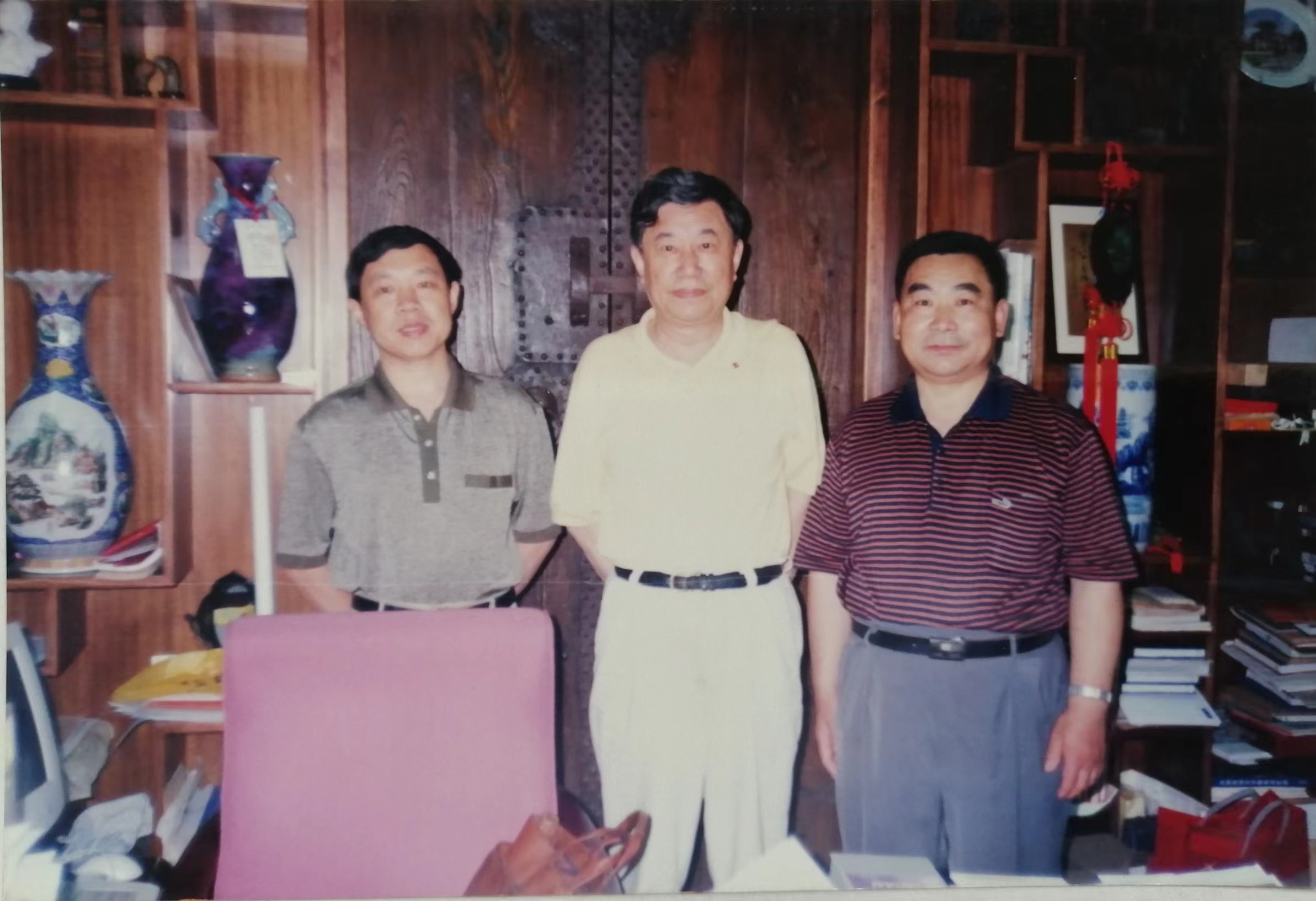 随后,应我们请求,光玮同志先领我们去了其家(当时光玮尚未结婚)。进其家门,只见迎面的墙壁上,挂着吴老大幅尺寸的遗像,遗像栩栩如生,慈蔼可亲,让人肃然起敬。进客厅,开卧室门,让人意外的是,几个卧室内,竟然全是书橱、书架,而书橱内,架上、书籍资料满满,这哪里是卧室,简直就是一个个书库。光玮解释说,这些全是父亲生前的用书、藏书、文献资料等,并表达了愿为此守护一生的意愿。感哉斯言,让人动容!在这里,怀着无比崇敬的心情,张教授又翻拍了三张吴老的遗照。随后,光玮同志又表示,愿为故乡办点实事,为莱芜一中捐赠些图书,并说准备和社里领导汇报一下,以文教社的名义捐赠。对此厚意,教授和我,当然除了感谢,还是感谢。