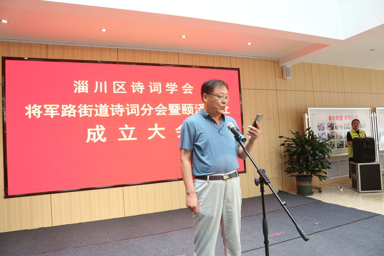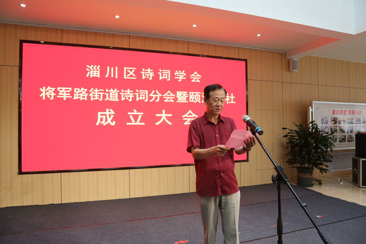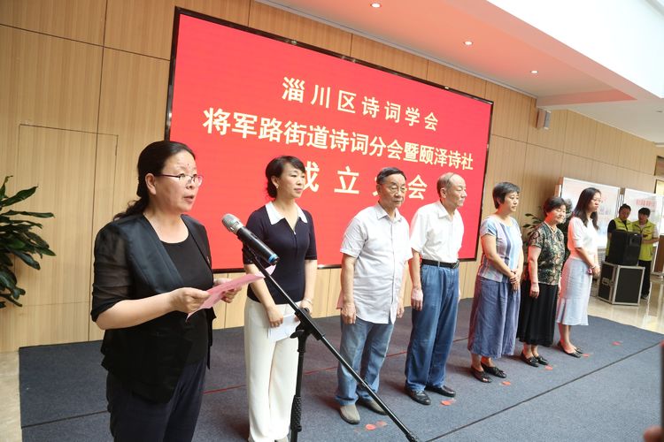 会上,淄川区文联主席李红蕾、淄川区诗词学会会长许永兴、颐泽社区党总支书记、居委会主任高翠红、将军路街道办事处工委委员房静,为淄川区将军路街道诗词分会和颐泽诗社成立揭牌。