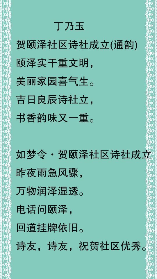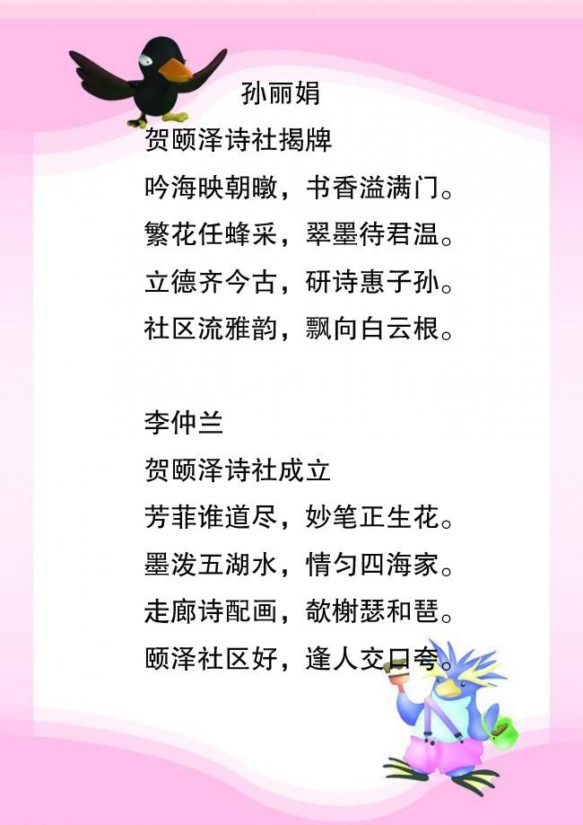颐泽诗社社长高翠红表示,今后将带领颐泽诗社全体社员创作出优秀作品,为继续促进社区的文明建设贡献诗词的力量。