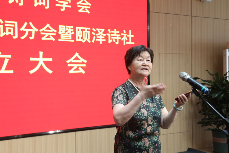 会上,淄川区诗词学会副会长、秘书长赵玉霞还带领大家诵读诗词,并进行了现场传唱。