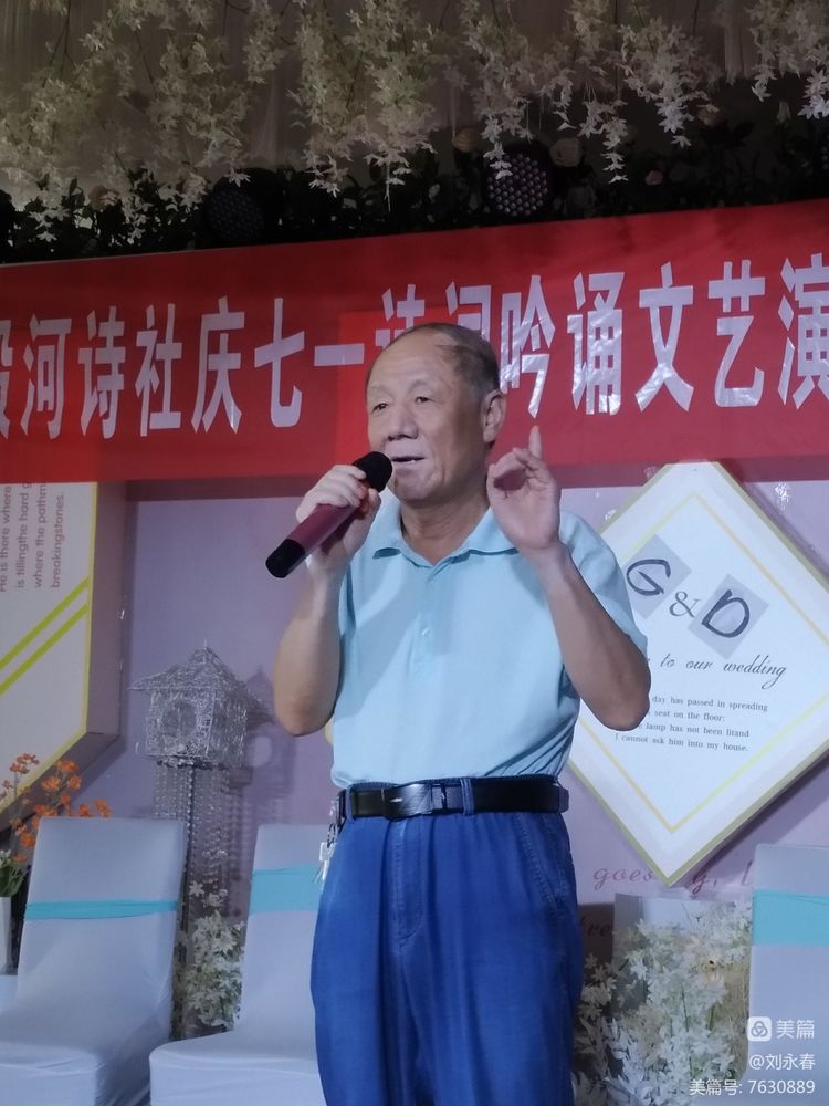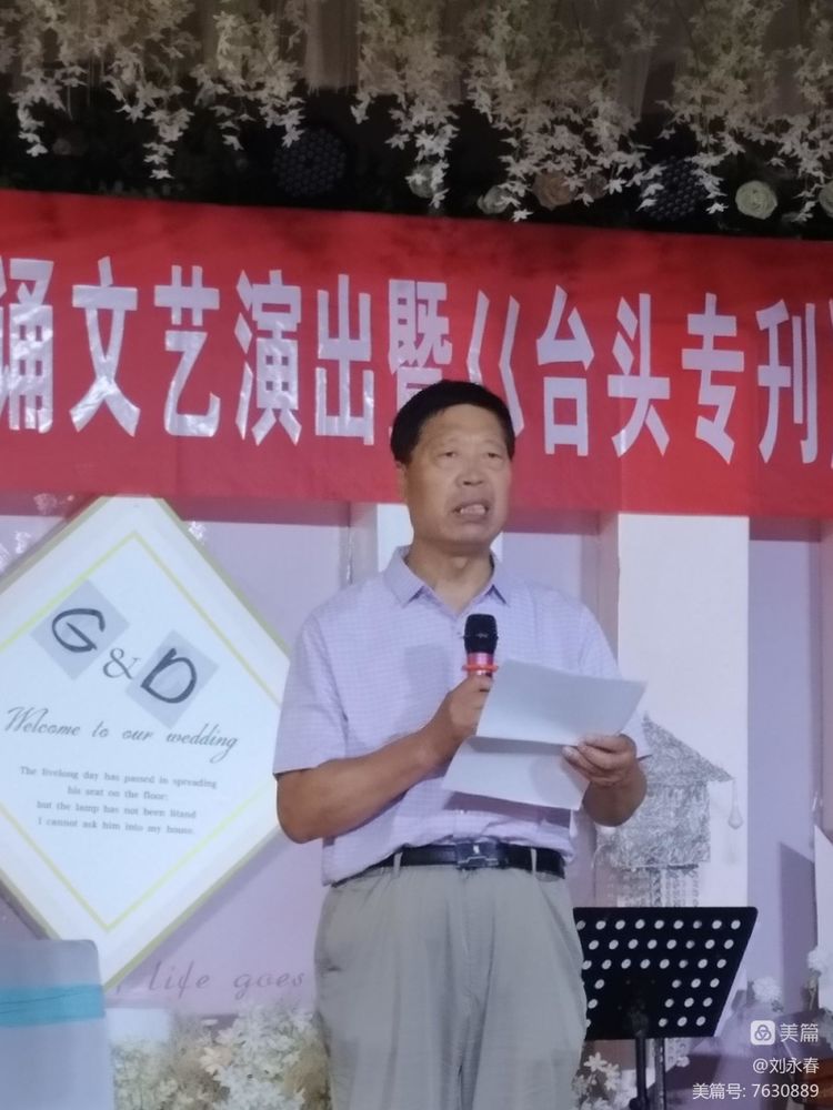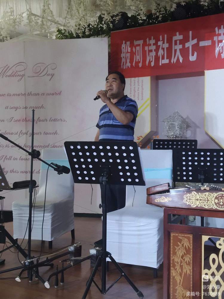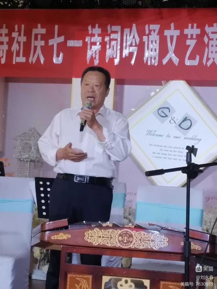 今天上午,淄川母亲河般河岸边,陶瓷古镇龙泉镇永兴大酒店,鼓乐声声,欢歌笑语,般河诗社庆“七一”诗词吟诵文艺演出暨《台头专刊》发行,在此如期举行。区文联主席李红蕾、诗词学会会长许永兴、龙泉镇教科文卫服务中心主任孙凌云,以及学会理事单位和诗词学会会员参加。诗词学会会员和连强艺术团进行了诗词吟诵和表演了文艺节目。