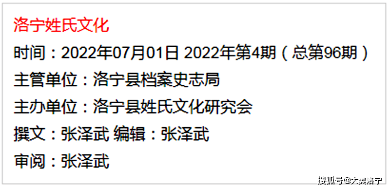 作者简介:张泽武,洛宁县陈吴乡新寨村人,2003年发起并组织成立了洛宁县姓氏文化研究会,任常务副会长兼秘书长。2006年参与组织筹备成立洛阳姓氏文化研究会,任副秘书长。2017年被推举为洛宁县姓氏文化研究会会长。