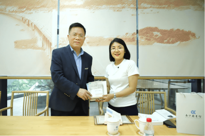 (△曾大兴教授向南沙图书馆赠送本人作品)