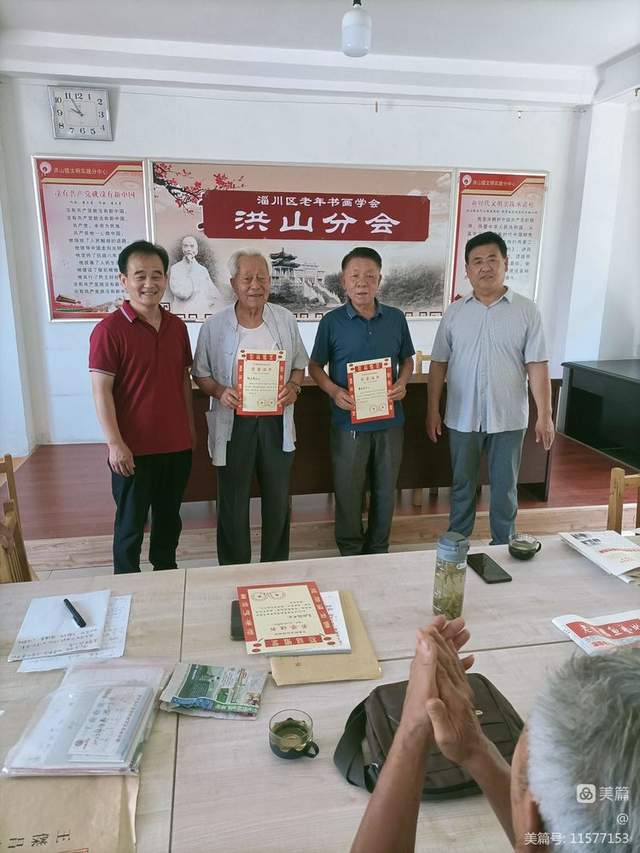 6月24日淄川区老年书画两会罗村分会召开党支部(扩大)会议,支部委员、分会班子成员和部分老党员、老会员骨干参加会议,主要议程:一是支部书记卢崇德对分会建立党支部的有关情况进行通报和说明;二是张笃平会长总结了上半年工作,并对庆七一,喜迎党的二十大相关活动进行详细部署;三是向市写春联荣誉证书获得 者颁发证书; 四是交流丶观摩了庆七一部分书画作品,请各界朋友观赏指导。(卢崇德)